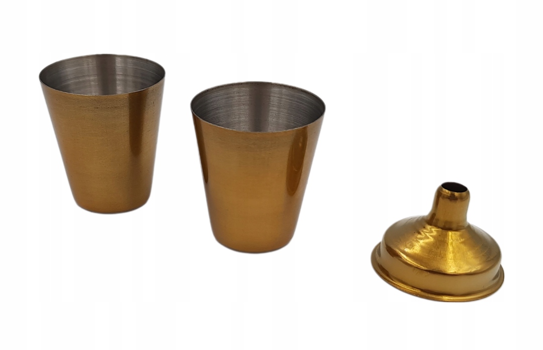 Предложение относится к набору из 2 очков, воронки и груди. Все в элегантной коробке. Это идеально подходит для подарка. Набор практичен и принесет большую радость. Грудная барабана имеет емкость 207 мл. Его размеры - 12x9 см. Размеры очков 4х3,5 см. Однако размеры всего набора составляют 21x16,5 см. Грудные и очки - металл. h2>