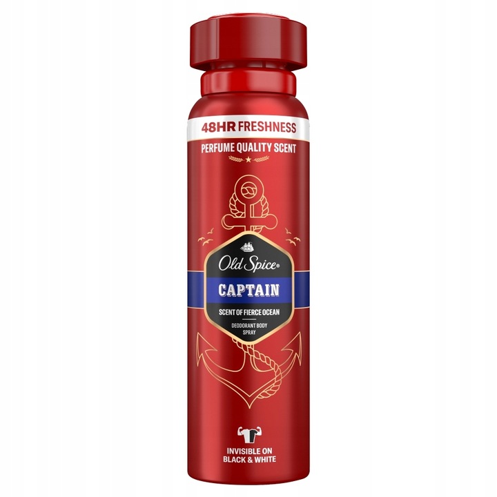 Наслаждайтесь 48 часами свежести и ароматной уверенности в себе с безалюминиевым дезодорантом-спрей Old Spice Captain для мужчин.