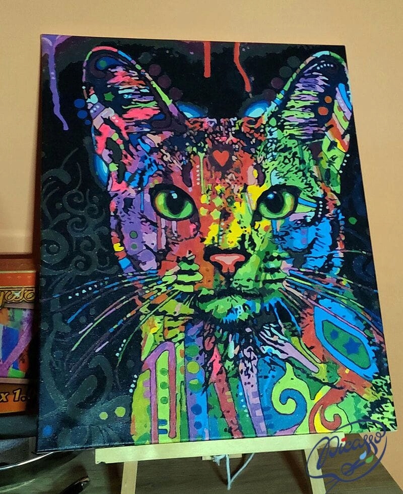 На холсте есть зоны с напечатанными на них номерами, которые необходимо закрасить краской с числовым присвоением.