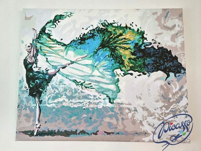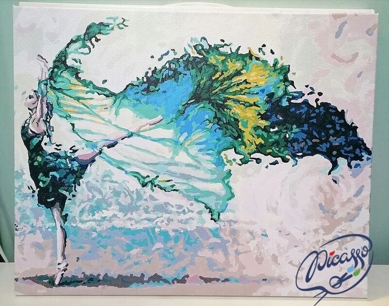 На холсте есть зоны с напечатанными на них номерами, которые необходимо закрасить краской с числовым присвоением.