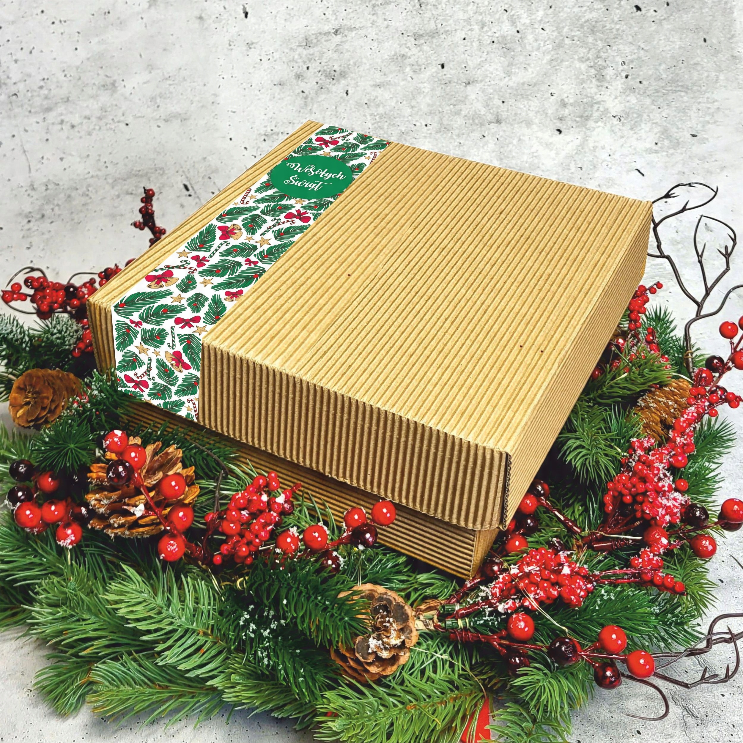 Все это бережно упаковано в элегантную коробочку размером 20х20х6 см, наполненную белой эко-стружкой для дополнительного эффекта. На крышке красочная этикетка с принтом, придающим набору неповторимый характер.