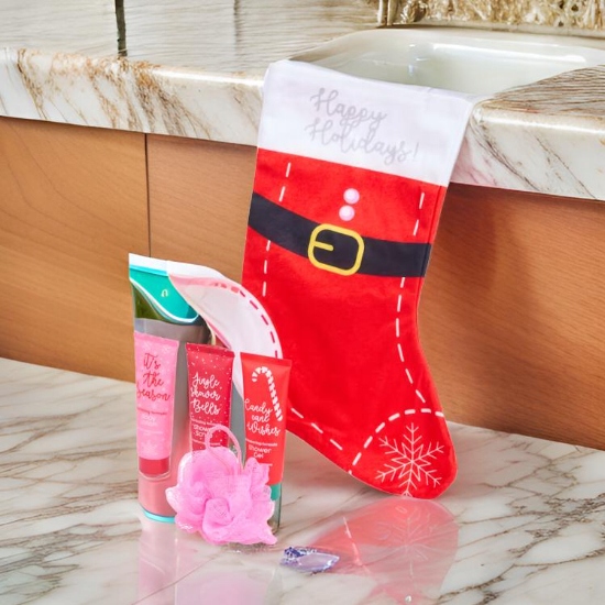 Подарите своим близким уникальный рождественский подарок! Подарочный набор в очаровательной упаковке в форме носка Санты – идеальный способ подарить новогоднее настроение и позаботиться о своем теле. Прекрасно подойдет в качестве рождественского подарка или небольшого подарка, в наборе есть все необходимое для комплексного ухода.