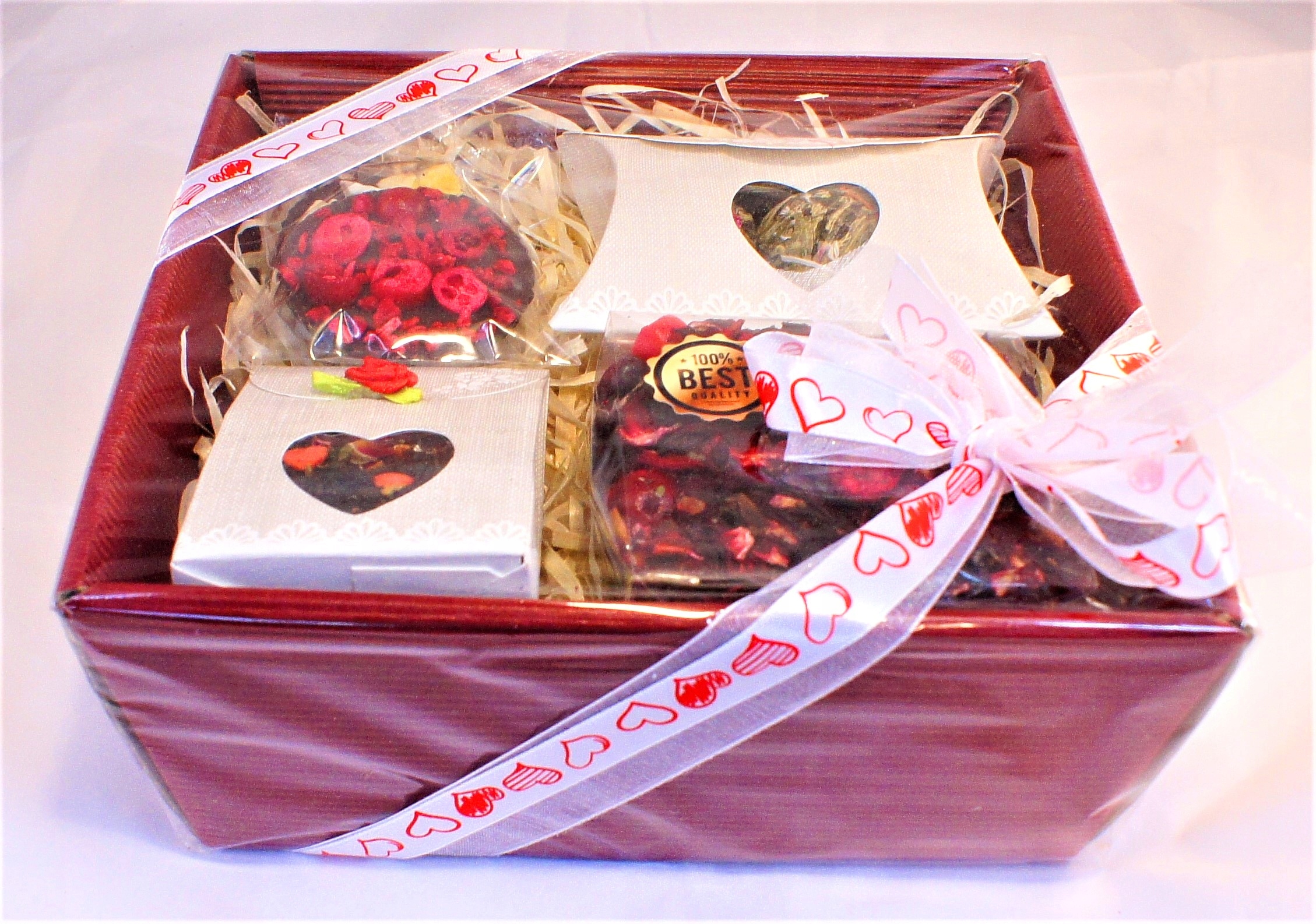 - 25г Храм Черный чай Love с сахарными сердечками и бутонами роз в красивой коробочке. < /ul>