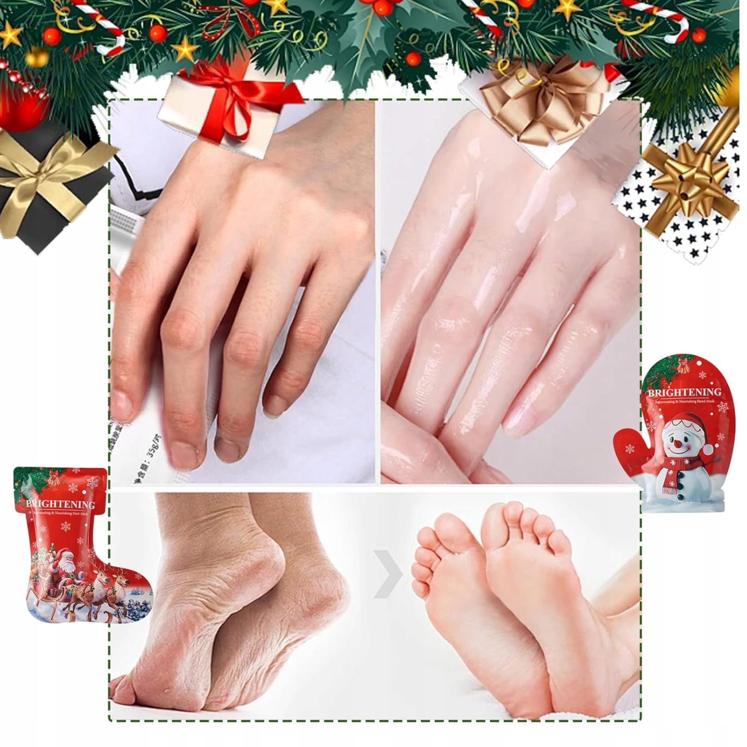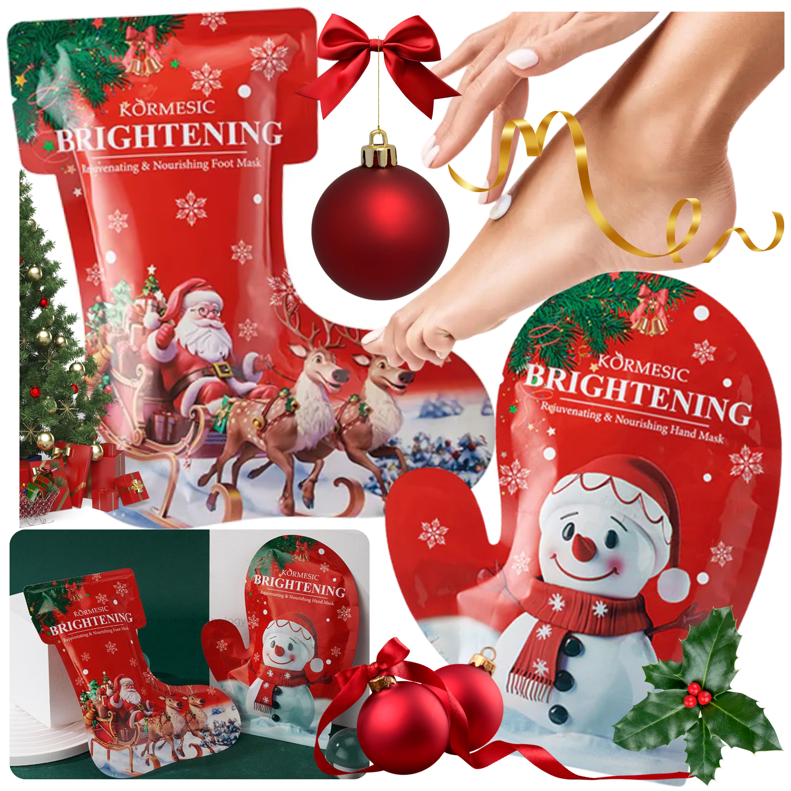 Внесите в свой распорядок дня уют, заботу и рождественское волшебство с набором масок для рук и ног Kormesic Brightening. Специально разработан для регенерации, питания и сияния кожи, в декоративной, веселой упаковке, отсылающей к праздничным традициям.