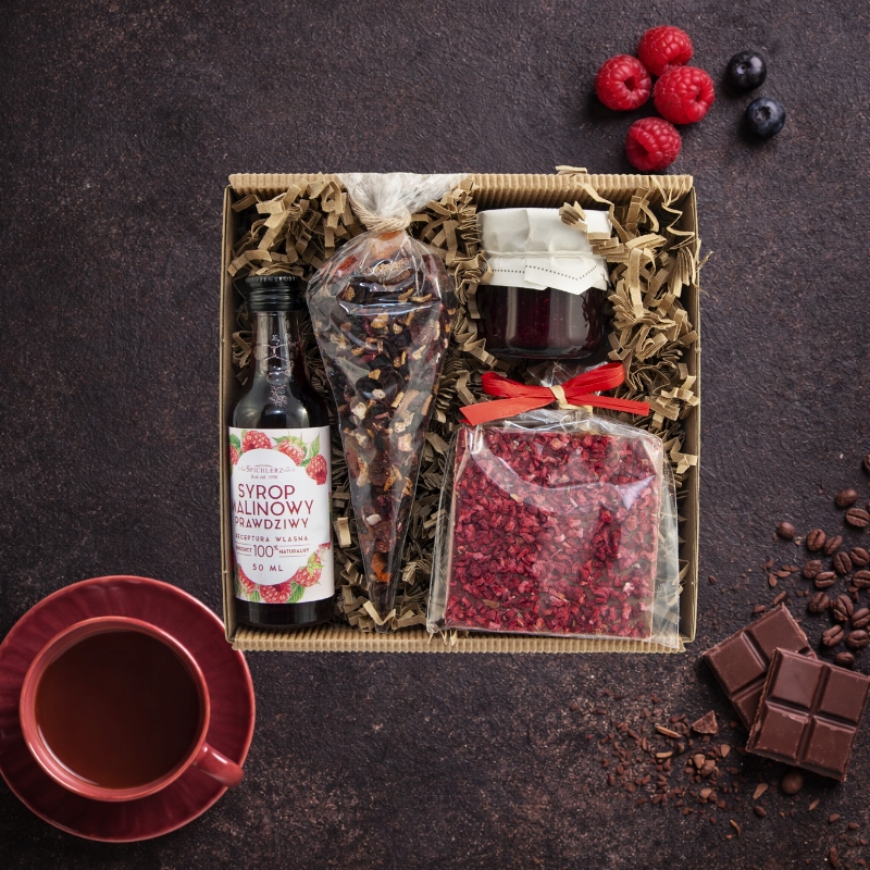 ПОДАРОЧНЫЙ НАБОР СИРОП ВАРЕНЬЕ ПРЕМИУМ ЧАЙ ШОКОЛАД С МАЛИНОЙ КОРОБКА
