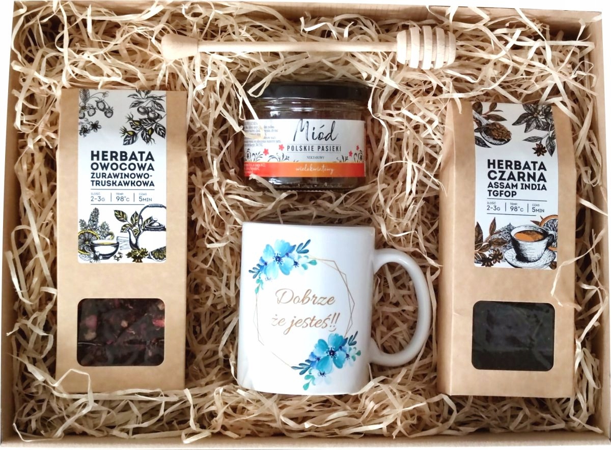 ПОДАРУНКОВИЙ НАБІР ВЕЛИКА КОРОБКА КОШИК ПОДАРУНОК У КОРОБЦІ КРУЖКА МЕДУ ТА ЧАЮ Zp1