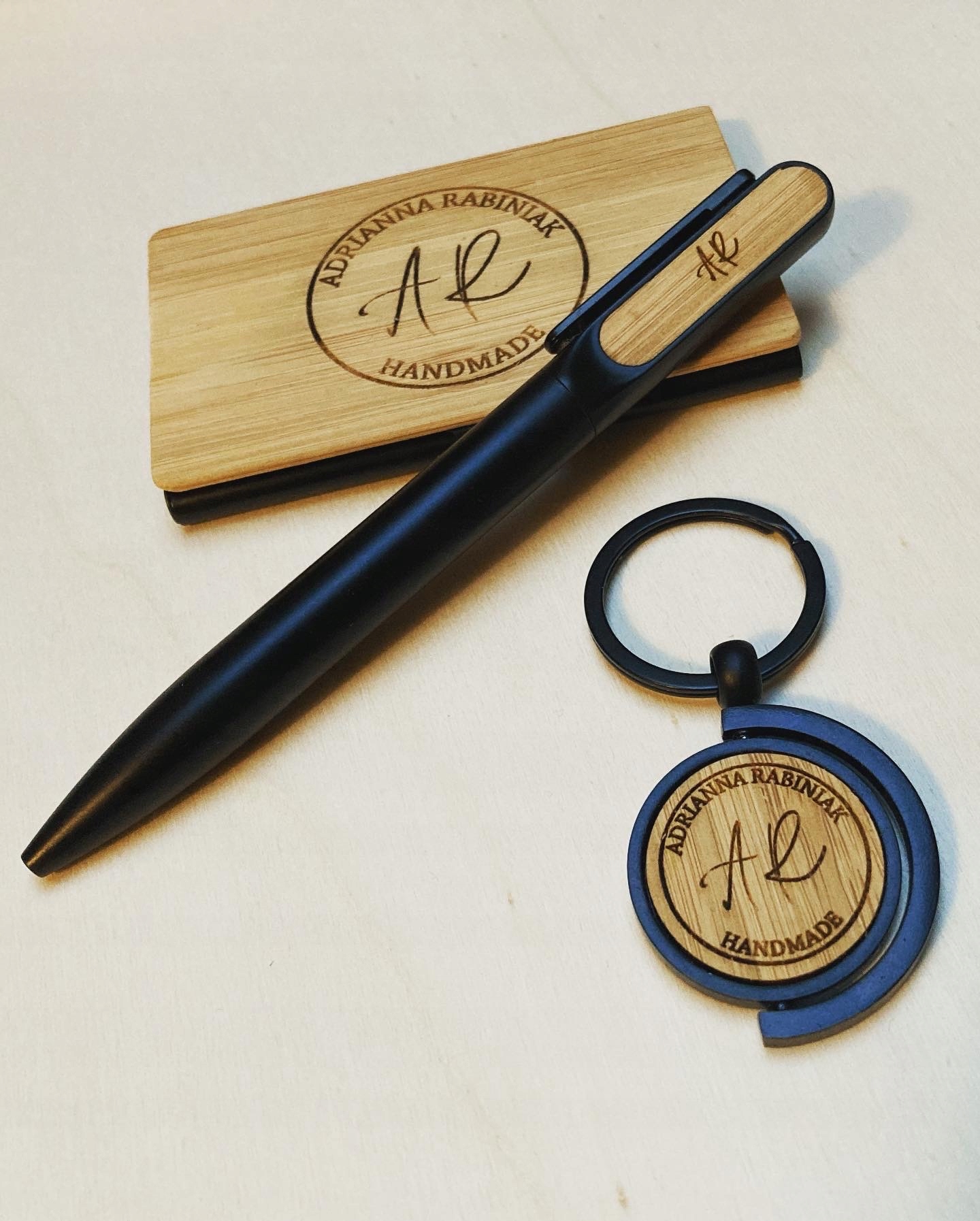 Логотип или любой рисунок можно нанести с помощью лазерной гравировки в 3-х местах: на визитнице, брелоке и ручке