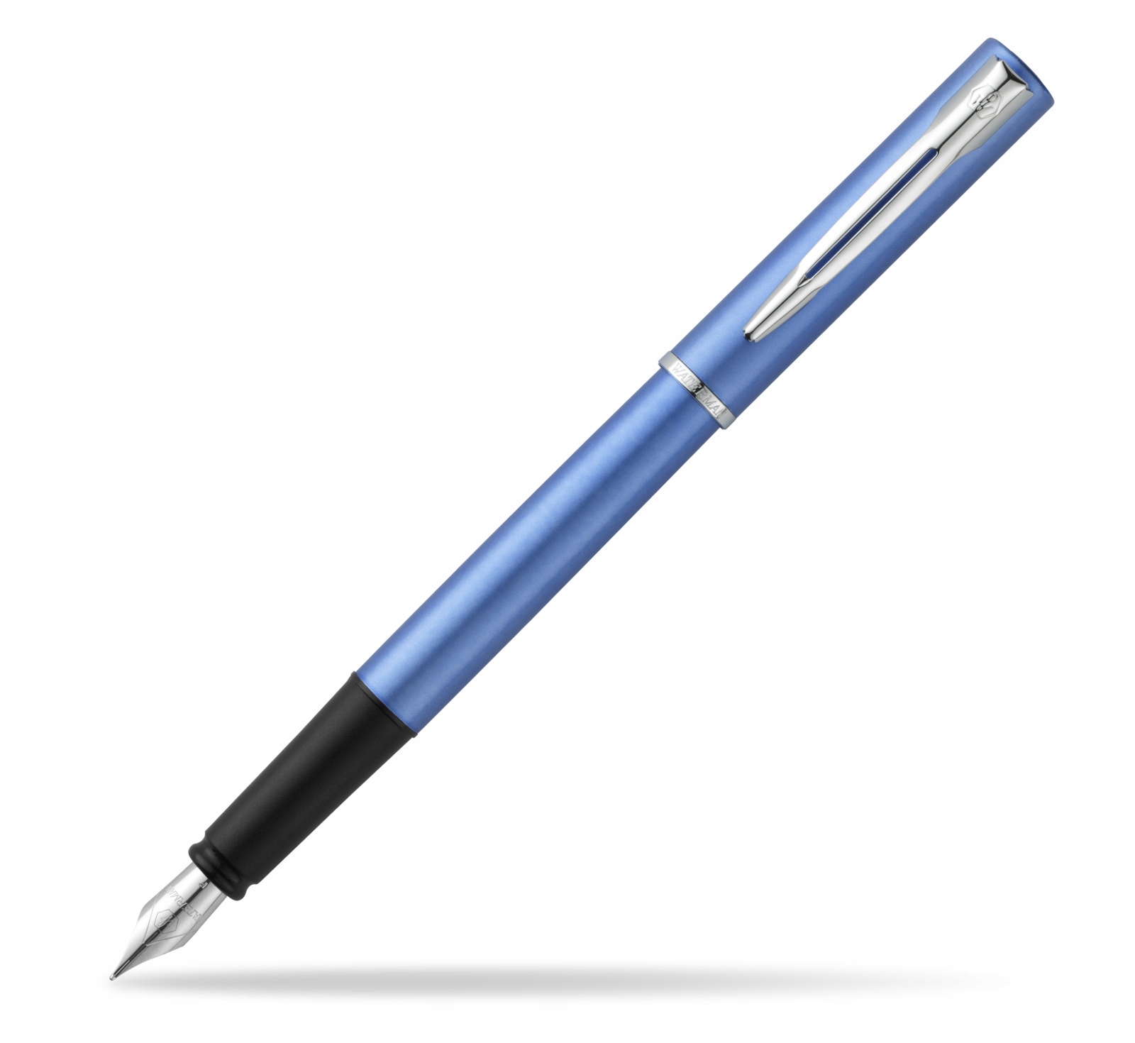 Перьевая ручка Перьевая ручка покрыта лаком синего цвета металлик. Клипса и кольцо изготовлены из нержавеющей стали и покрыты блестящим хромом. Перо изготовлено из нержавеющей стали. На поверхности пера видна гравировка бренда Waterman. Ручку можно заправить с помощью прилагаемого картриджа. Он также совместим со стандартным плунжером Waterman.