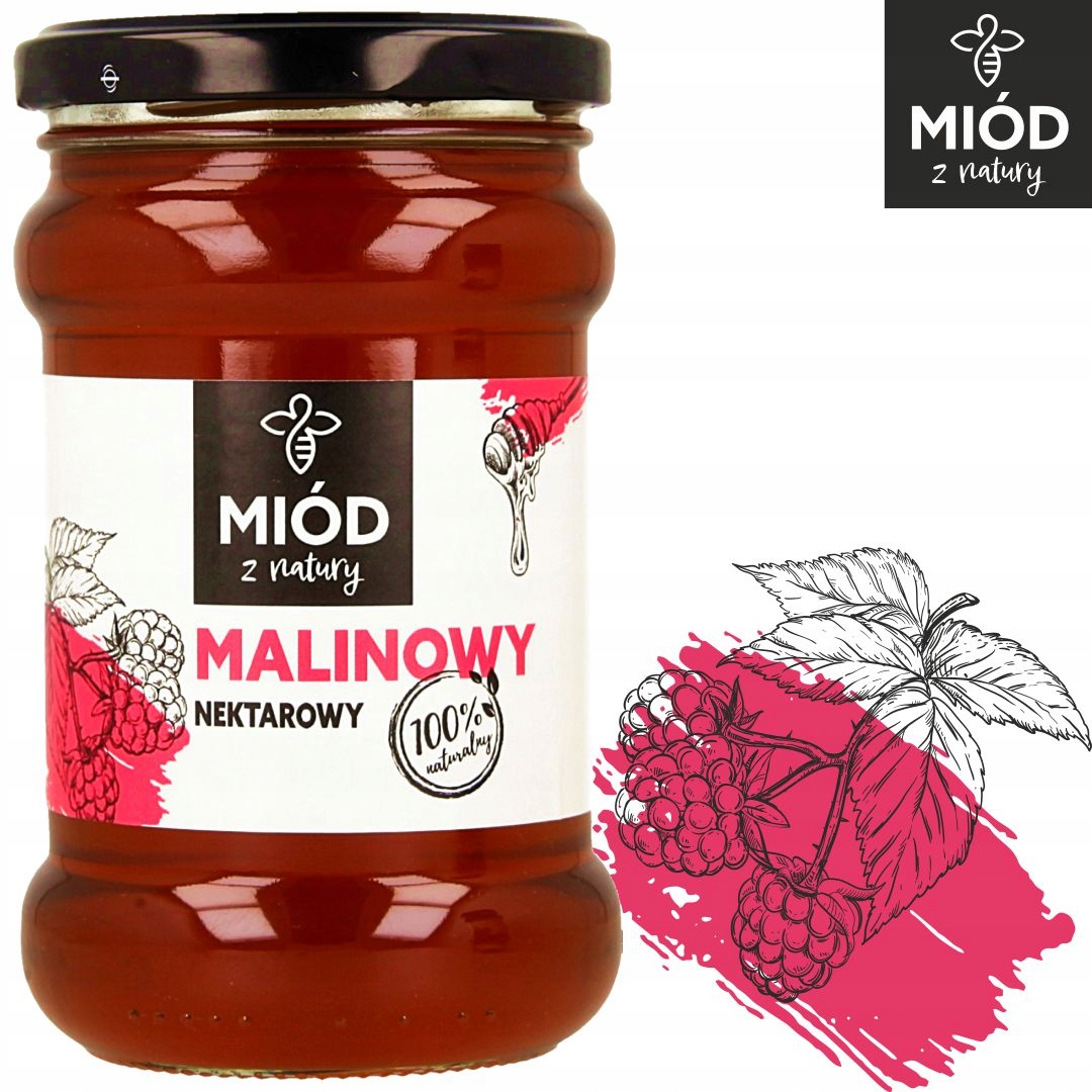 Малиновый мед, как следует из названия, изготавливается из цветков малины. По этой причине встречается относительно редко. Малина имеет короткий период цветения. При получении малиновый мед имеет соломенный, золотистый цвет. Мед содержит более 50 эфирных масел (полученных из нектара), которые придают ему характерный фруктовый аромат. Вкус продукта, полученного из ранних сортов, слегка кисловатый. Мед из поздних сортов слаще.