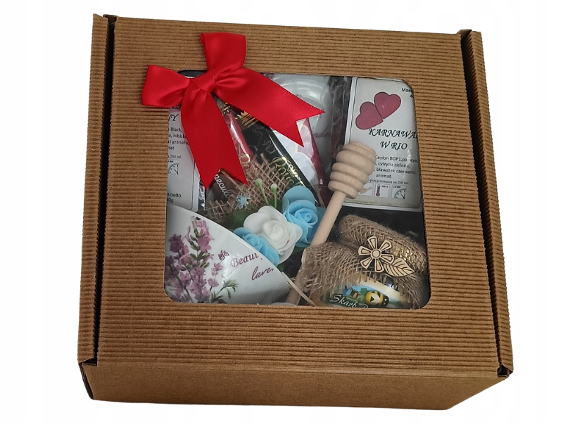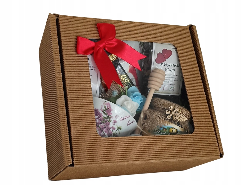Все помещено в прочный фасадный короб с окошком размером 22смx21смx11смнаполнен ароматной древесной шерстью и изысканным декором