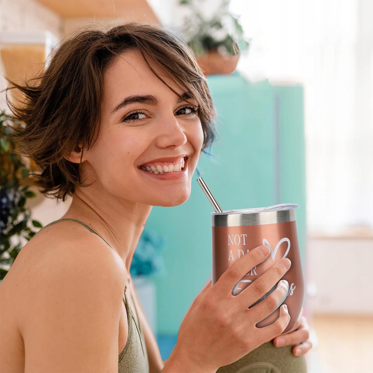 ❤️1 изолированная чашка для вина из нержавеющей стали объемом 340 мл (с 1 соломинкой из нержавеющей стали и 1 соломенной кистью)