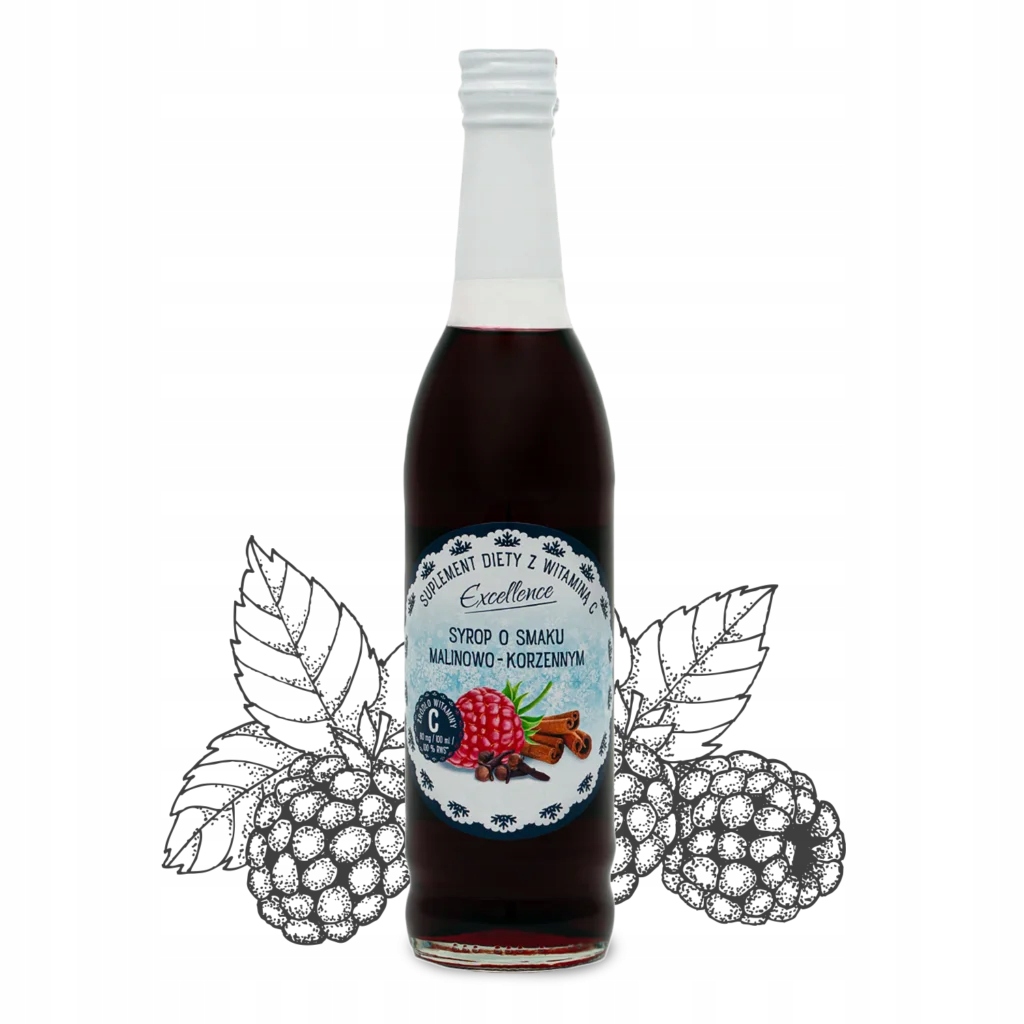 - БАД с витамином С, сиропом со вкусом малины-гвоздики-корицы и медом 430 мл. Экселанс – 1 шт.