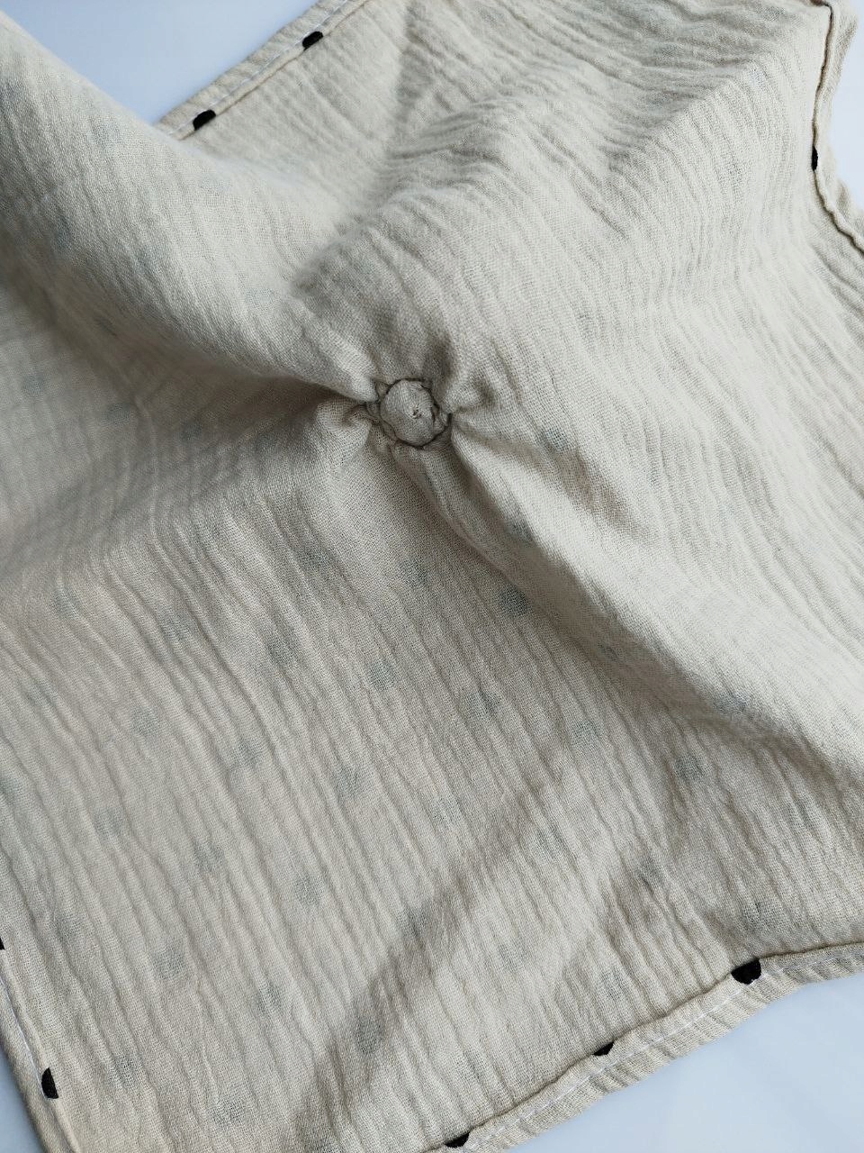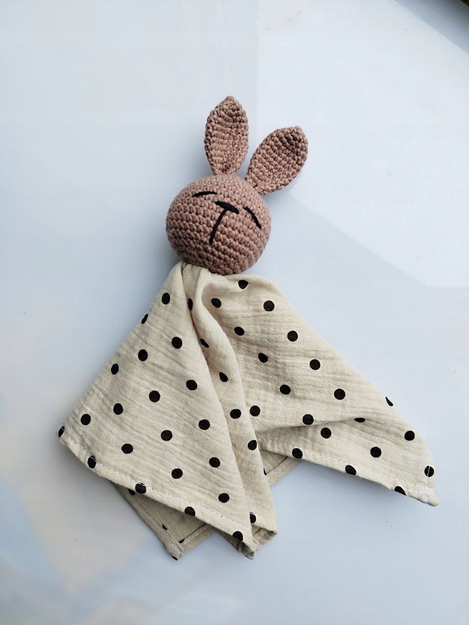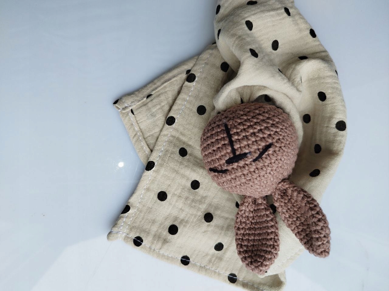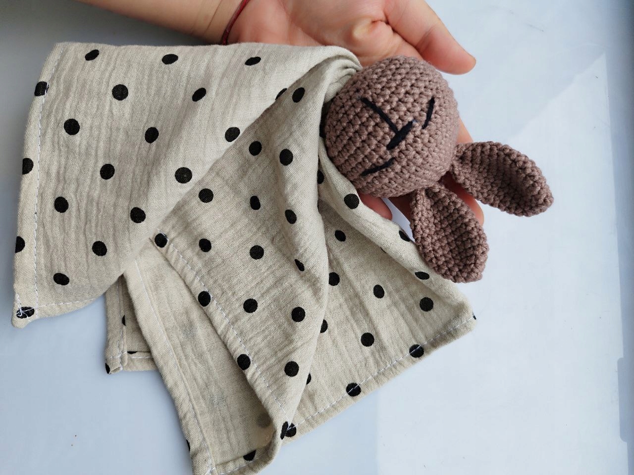 Набор состоит из подвески для подгузника соски и муслинга с приятной игрушкой