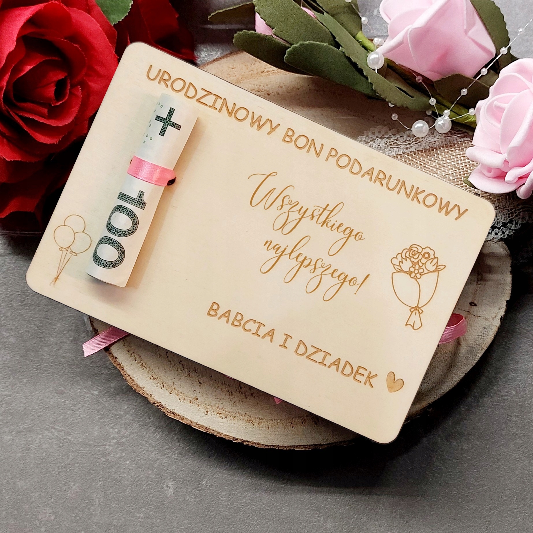 ПОДАРОЧНЫЙ КУПОН НА ДЕНЬ РОЖДЕНИЯ ДЕРЕВЯННАЯ ПОДАРОЧНАЯ КАРТОЧКА НА ДЕНЬГИ