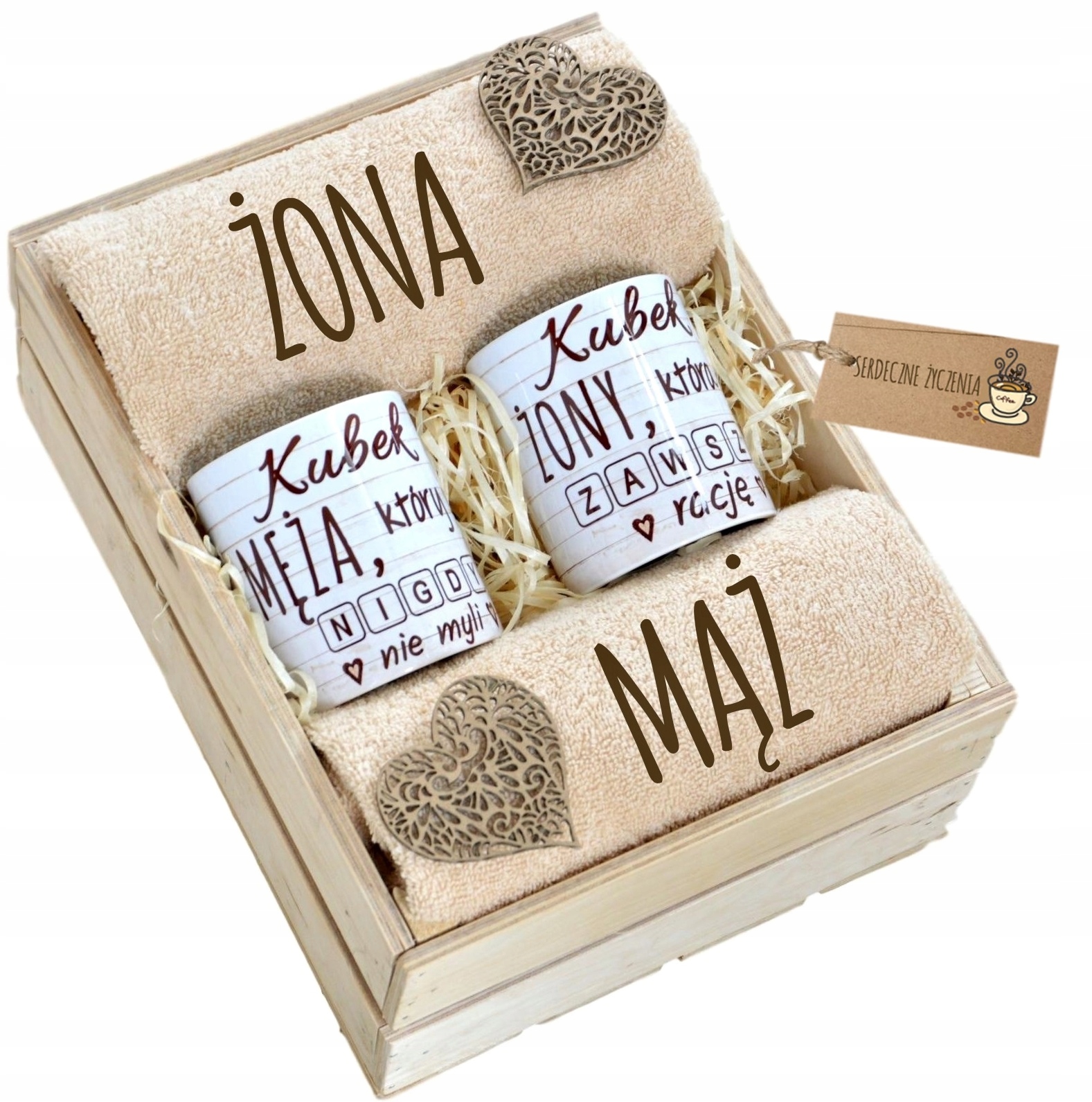 Оригинальный ЭКО-набор в деревянной коробке станет отличным подарком на любой случай.Выберите этот уникальный набор в качестве подарка на новоселье, свадьбу или годовщину свадьбы, и вы доставите получателю огромную радость. КРУЖКИ и ПОЛОТЕНЦА будут иметь ОРИГИНАЛЬНЫЕ стойкие отпечатки. С таким очаровательным подарком вы превратите каждое совместное чаепитие или кофе в приятное мгновение.