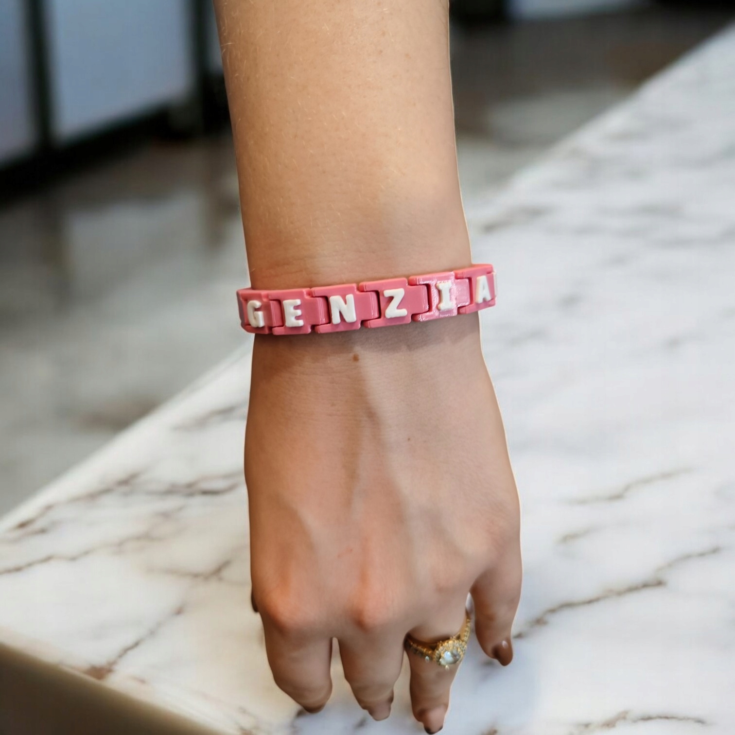 Стильный дизайн со ссылкой на Ge nz Браслет имеет эстетику и в то же время простой дизайн с буквами, расположенными в слове «серый ген». Каждый элемент был точно напечатан в 3D -технологии, благодаря которой браслет выглядит современным и стильным, идеально соответствующим повседневным стилизациям. Носив его, вы показываете свою привязанность к своим любимым создателям.