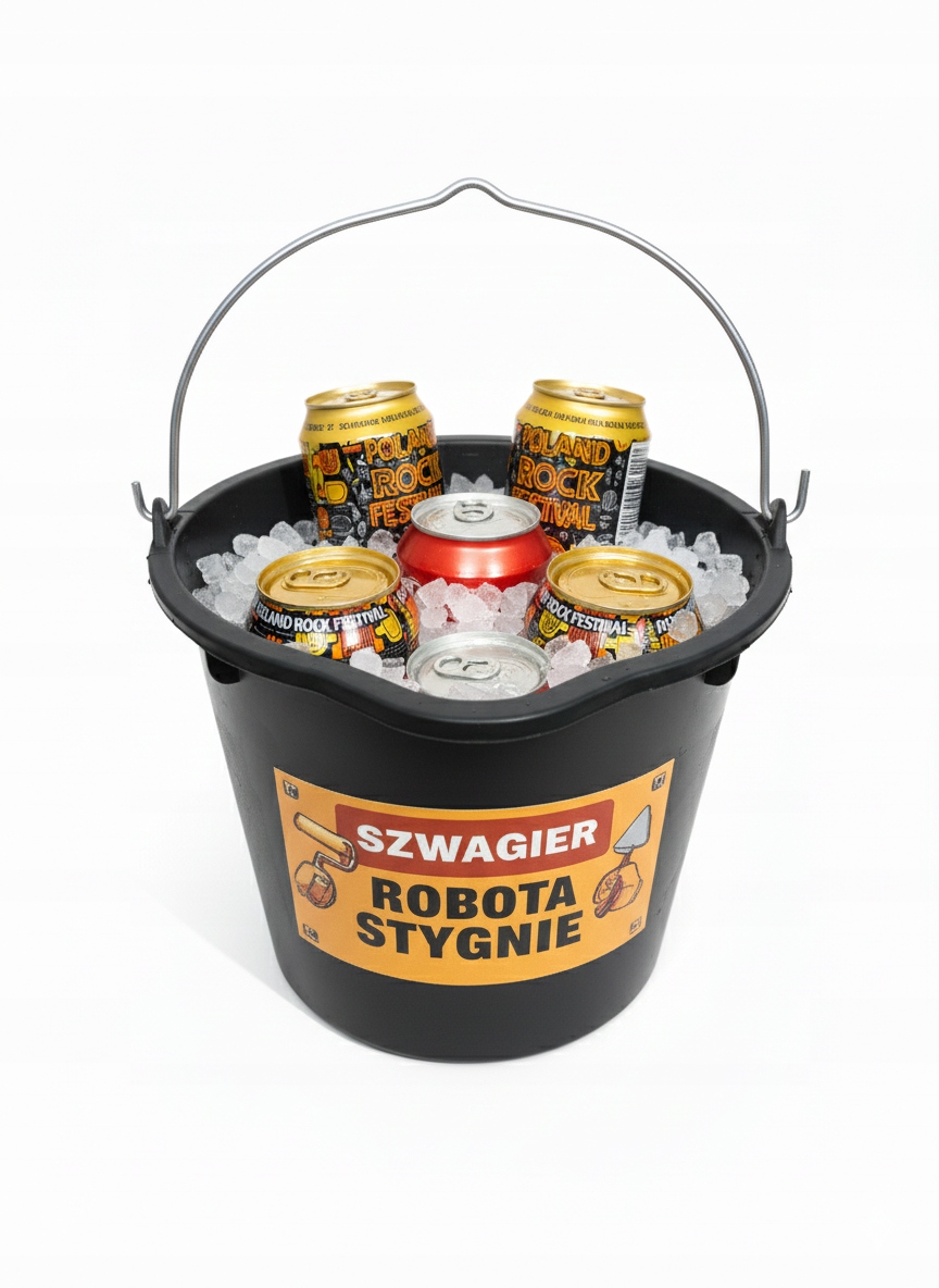 ✅ 1. Ведро 5 л с персонализированной наклейкой – прочное ведро с красочной наклейкой и классическим текстом: "РАБОТА ОХЛАЖДАЕТСЯ".