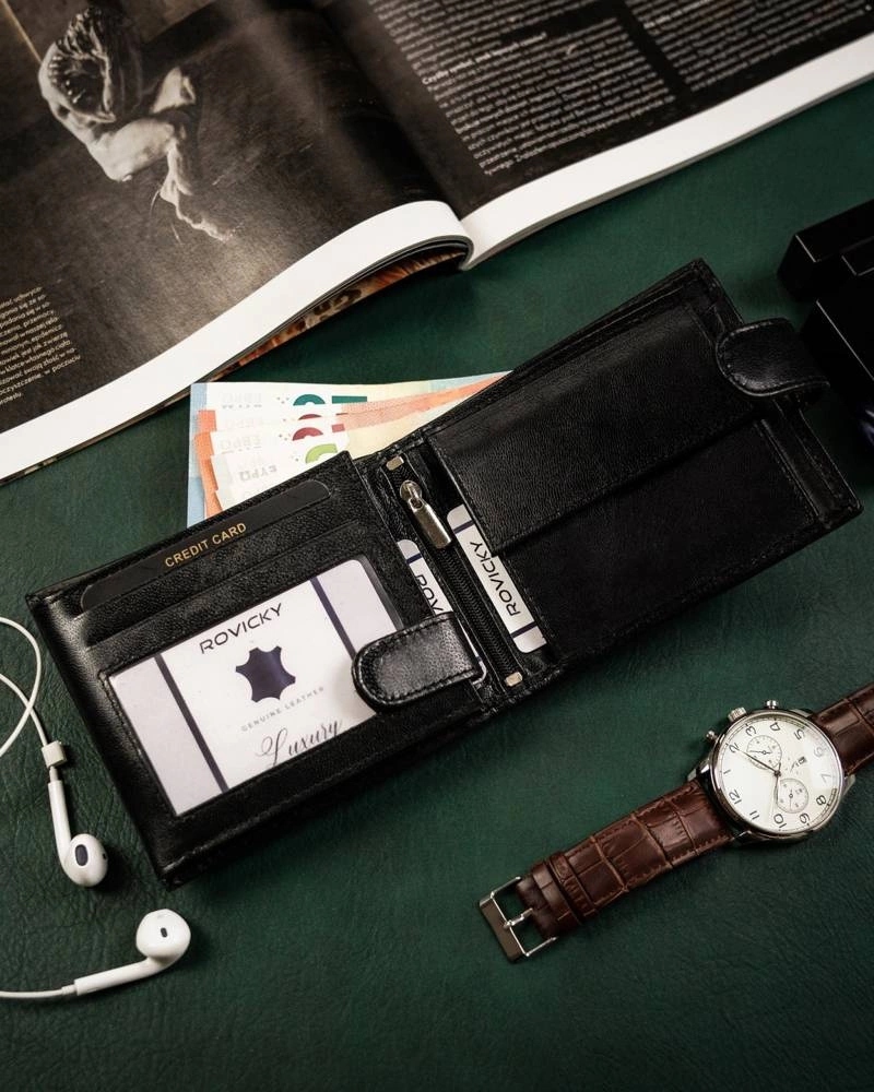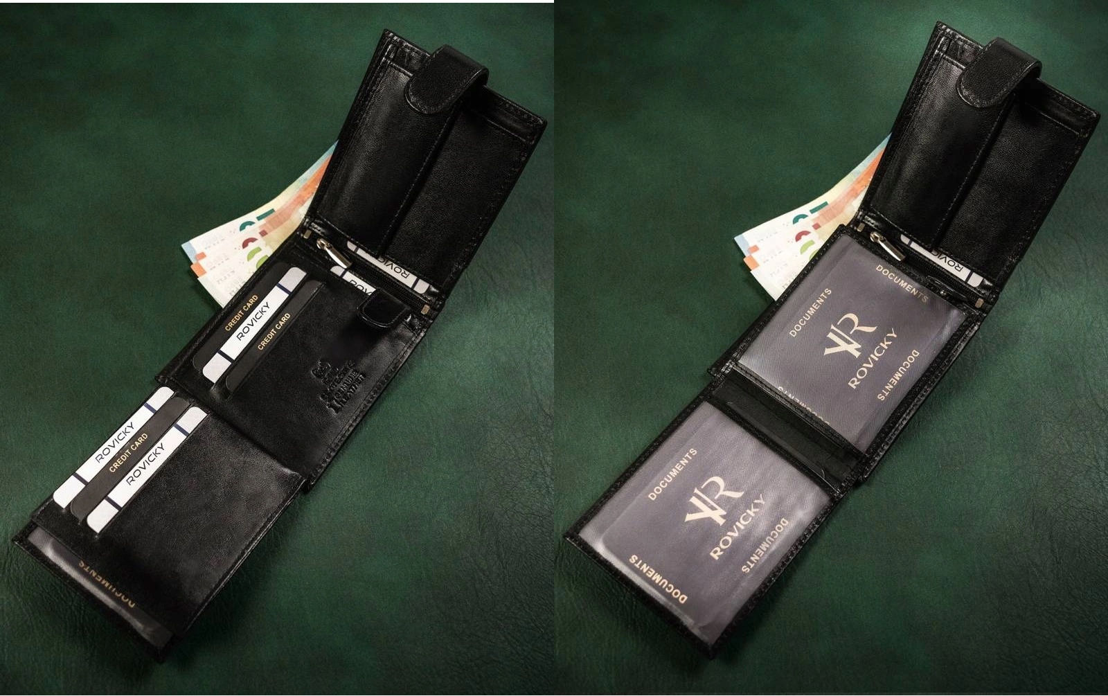 Корт включает в себя: h2> - кожаный портфель польской компании Rovicky- b> обязательно для каждого человека, который отвечает требованиям даже самого требовательного. Это отличный выбор для всех, кто ценит безопасность и практические решения. Он будет разместить все, что вам нужно. Вы найдете легко доступные отсеки с местом для удостоверения личности, водительские права или фотографии ваших близких, карманы для платежных карт, которые вы используете каждый день. Внутренний раздел портфеля обеспечивается закрытием. Интерьер организован и очень практически. Кроме того, на задней панели портфеля практическое карман для наиболее используемой карты оснащен безопасной технологией RFID, которая блокирует карты из несанкционированного сканирования