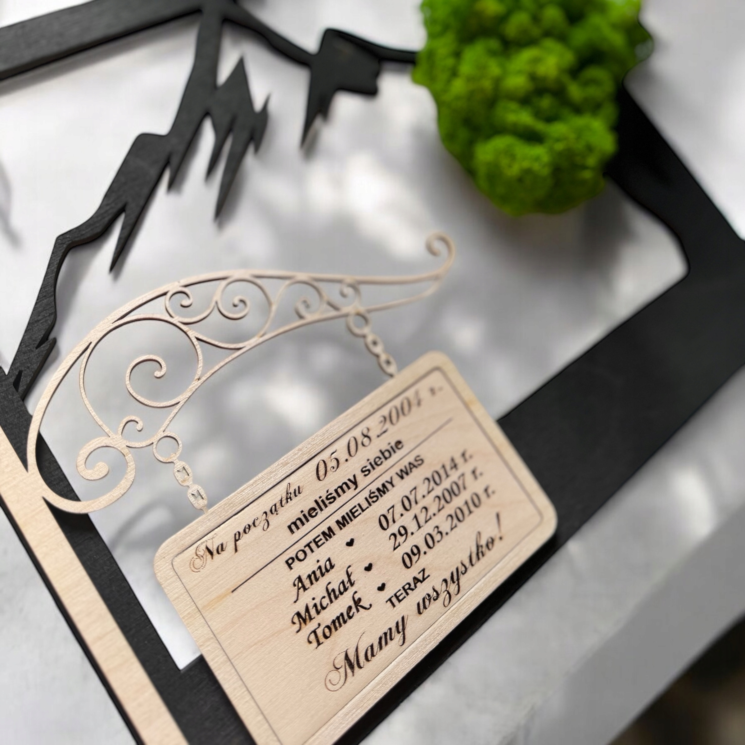 ✌️Гравированная табличка - Персонализированная семейная история, выгравированная в дереве с особой тщательностью. Содержит самые важные даты и события, такие как свадьбы, рождение детей и другие важные моменты.