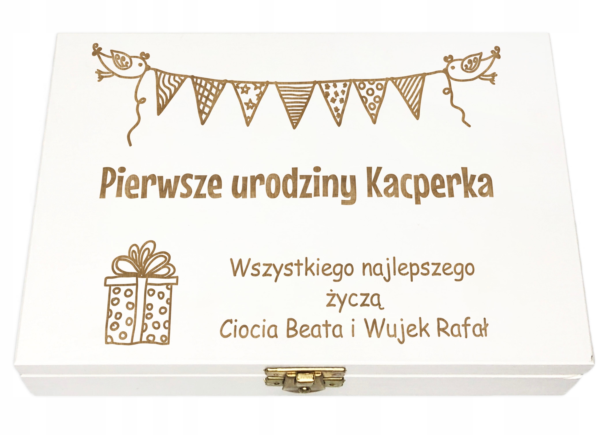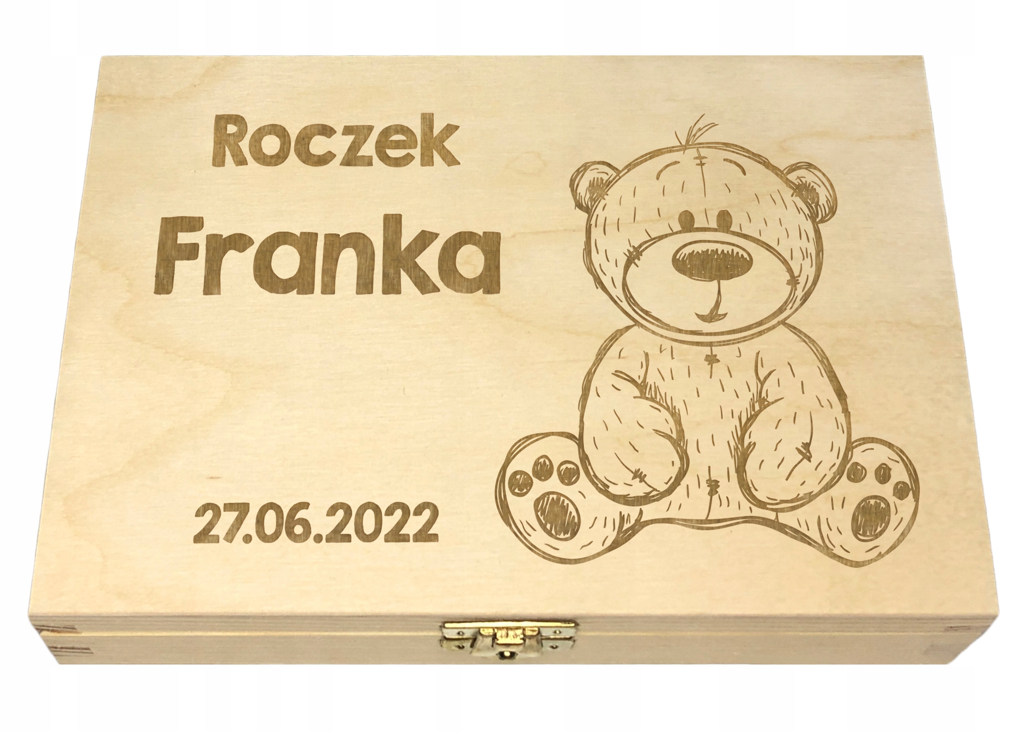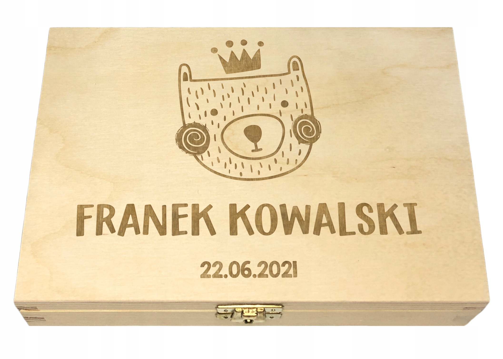 Деревянная шкатулка с гравировкой отлично подойдет в качестве подарка ребенку на первый день рождения. В набор входят столовые приборыиз нержавеющей стали с рельефным мотивом плюшевого мишки, что помогает ребенку научиться пользоваться всеми элементами набора. p>