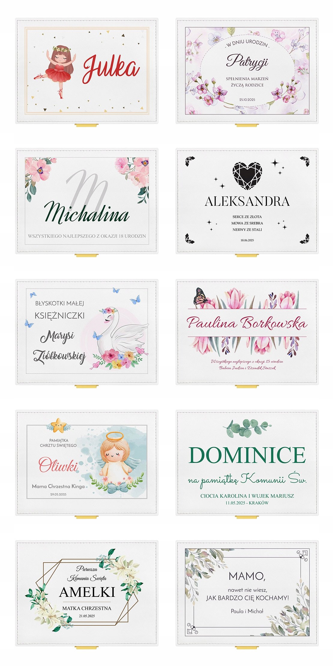Белая коробочка с принтом – прекрасный подарок женщине. Эта персонализированная коробочка отличается классической формой и точными деталями. . Приятные для глаз пастельные тона футляра и тонкая строчка подчеркивают эксклюзивный характер изделия. Внутренняя часть покрыта приятным на ощупь бархатным материалом. В верхней части находится зеркало и место для ожерелий, браслетов и сережек. Коллекция золотых и серебряных украшений будет храниться в 2 ящиках. Мы добавляем подарочную упаковку совершеннобесплатно! Выберите дизайн и создайте персонализированный подарок подходящий к замечательному случаю.