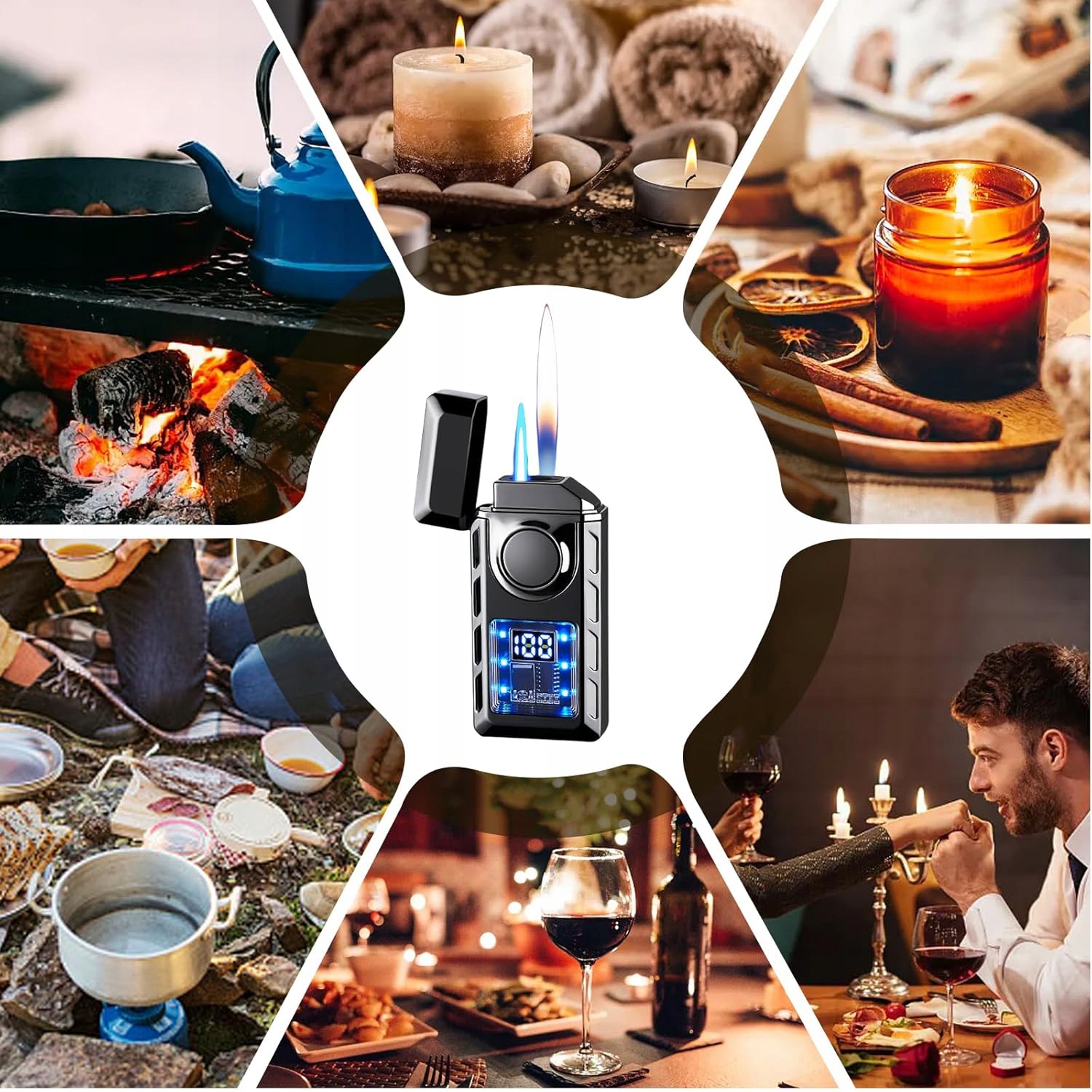 Умная зажигалка переключается между обычным и синим пламенем, добавляя дополнительный элемент к вашему освещению. (Без газа)
