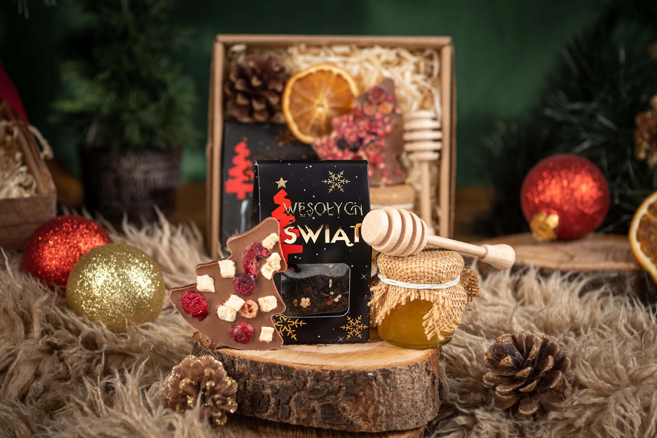 Рождественская подарочная коробка с чаем, шоколадом и медом