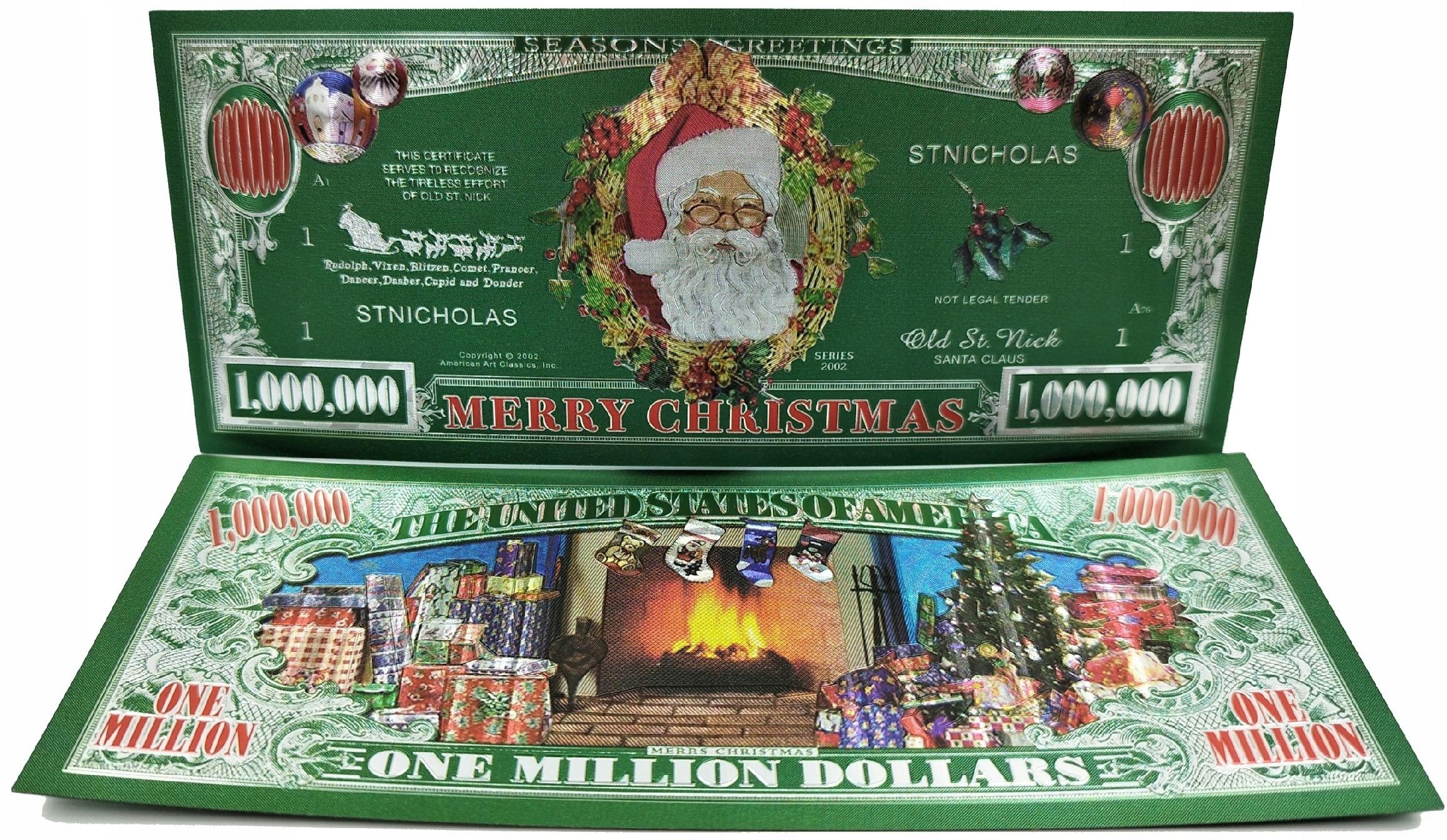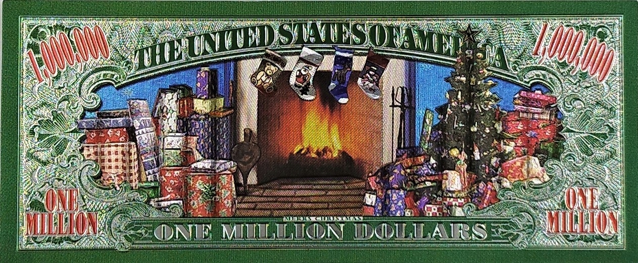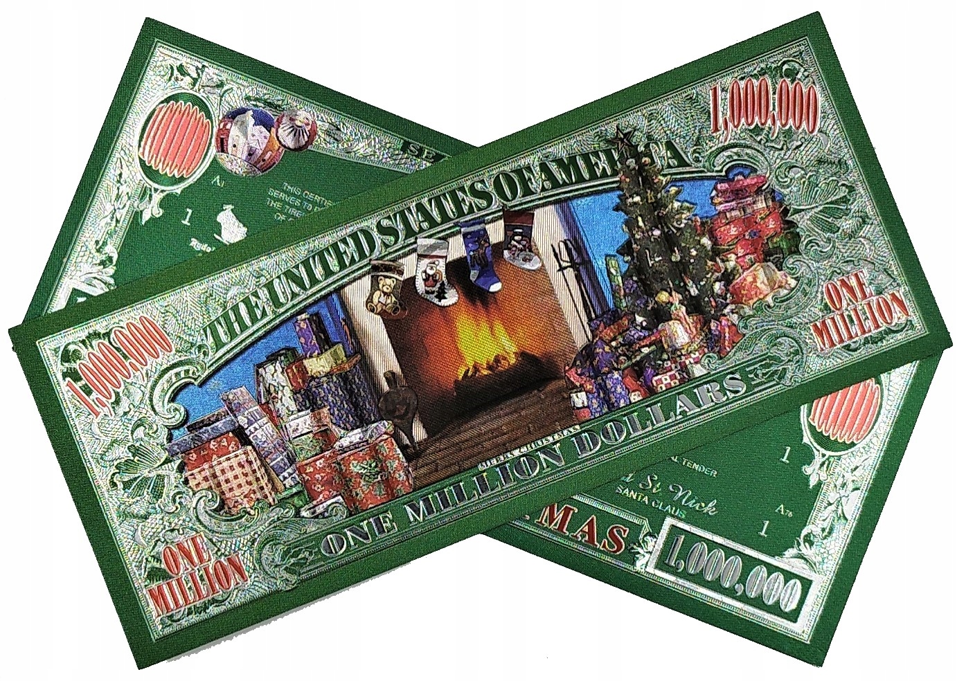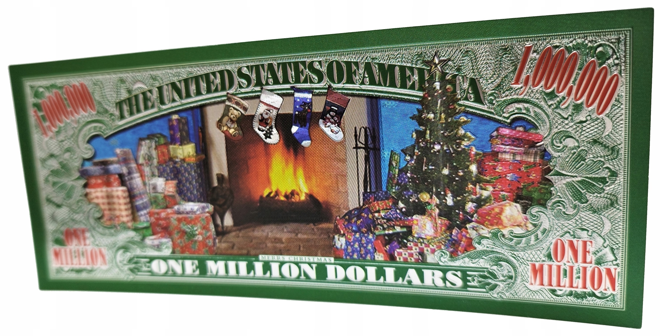 ВЕСЕЛАЯ РОЖДЕСТВЕНСКАЯ БАНКНОТА 1 000 000 ДОЛЛАРОВ, ПОЗОЛОЧЕННАЯ БАНКНОТА