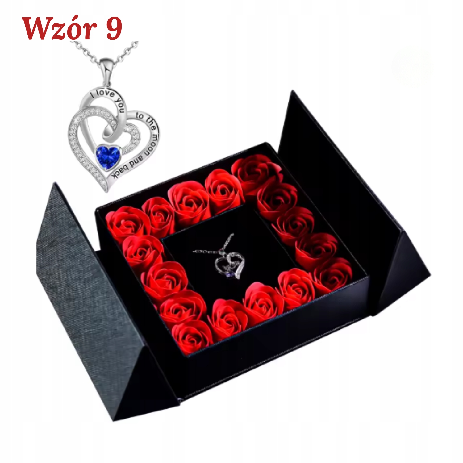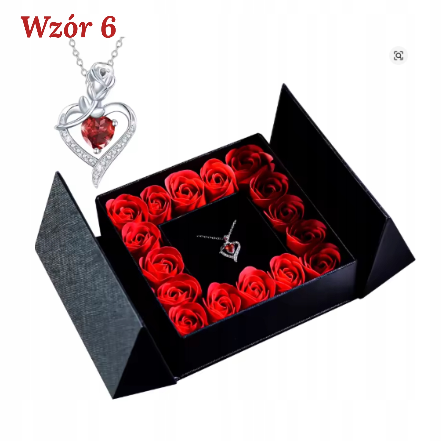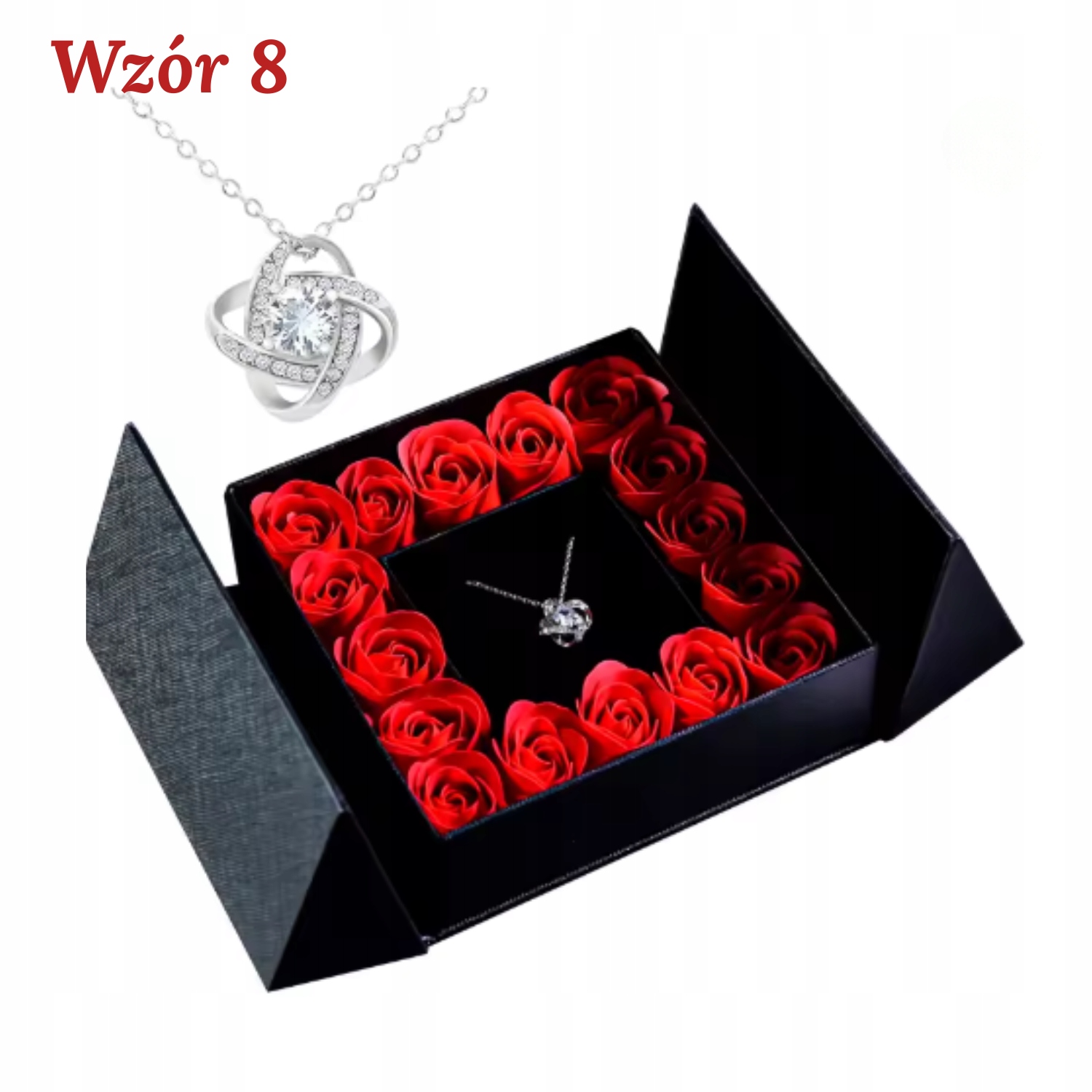 Вот элегантное ожерелье с подвеской, заключенным в ароматную коробку с вечной розой - красивые украшения и символ любви в одном.