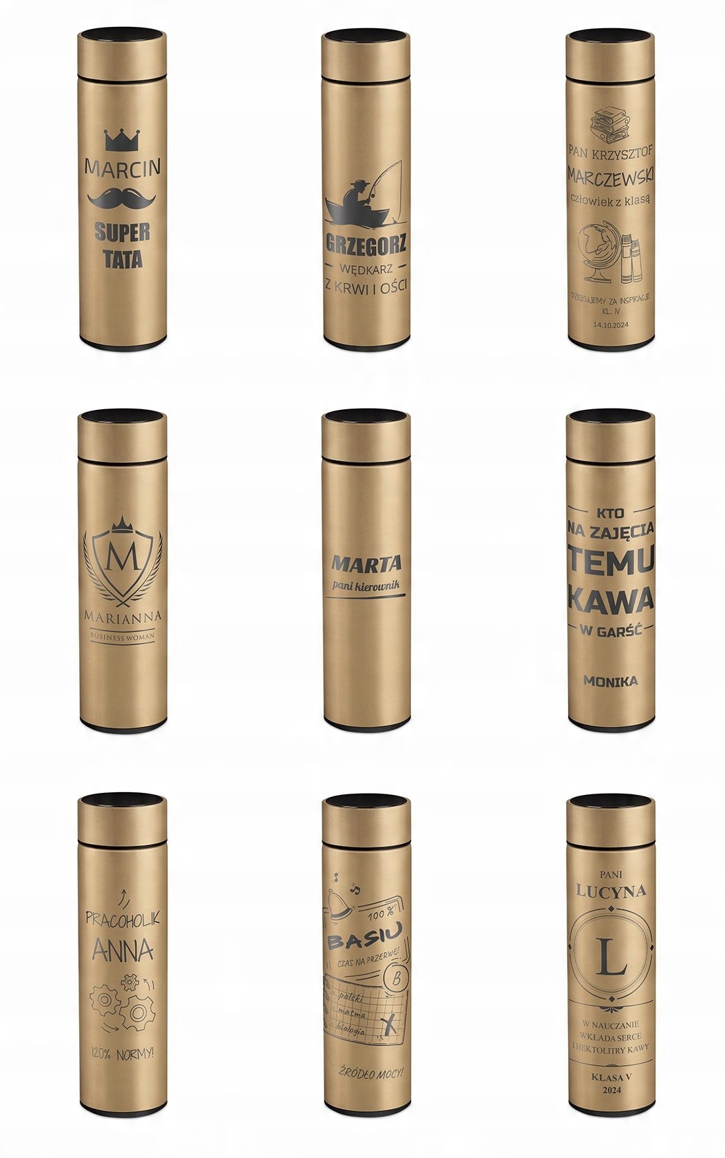 Вы ищете подарок для любителя кофе, у которого всегда должна быть с собой чашка кофе? Именная золотая кружка со светодиодным дисплеем и оригинальной гравировкой, то есть посвящением, – это практичный подарок для всех, кто ведет активный образ жизни. Этот термос изготовлен из нержавеющей стали, поэтому он устойчив к повреждениям. Он вмещает до 400 мл жидкости, как горячей, так и холодной. Этот сосуд используется для защиты теплого напитка от быстрого остывания. По этой причине это определенно хорошая идея в качестве подарка для путешественника и любителя гор, т. е. людей, которые проводят в пути целые дни, часто борется с огромной усталостью. Этот золотой термос с посвящением поместится как в треккинговом рюкзаке, так и в сумке, которую каждый день берете на работу. Это также прекрасная идея подарка для сноубордистов и лыжников, которые будут рады выпить несколько глотков зимнего чая в перерыве от адреналинового катания. Выберите дизайн гравюры и сопоставьте его с хобби и профессией вашего близкого человека. Создайте необычный подарок любителю кофе и чая по особому событию. Бесплатно добавляем подарочную упаковку с логотипом магазина Murrano!