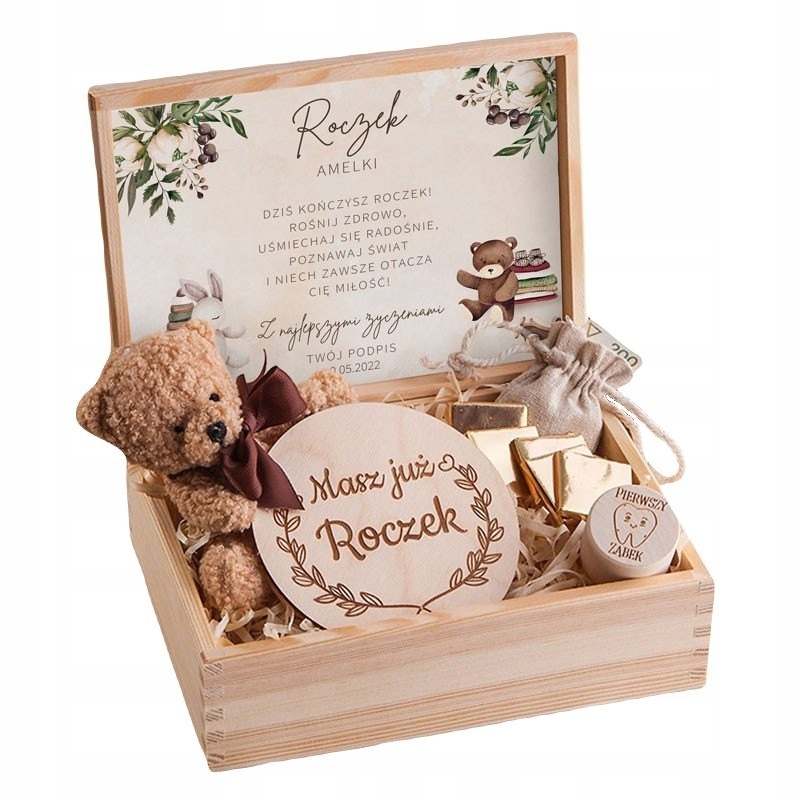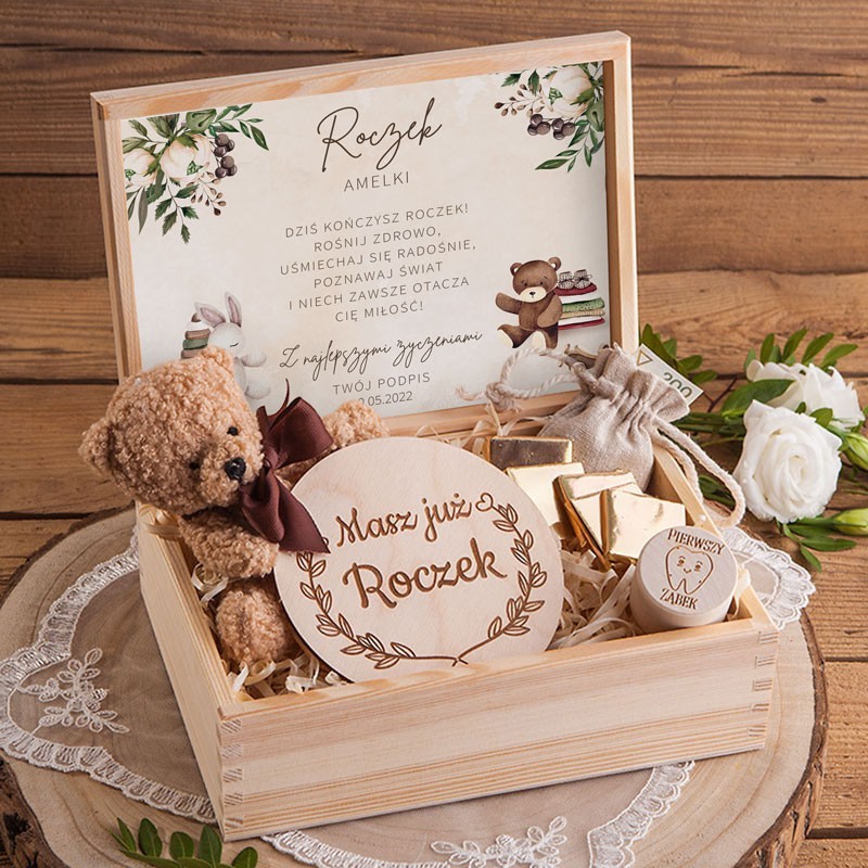 ПОДАРУНОК для однорічного ІМ'Я Талісман ведмедика в скрині