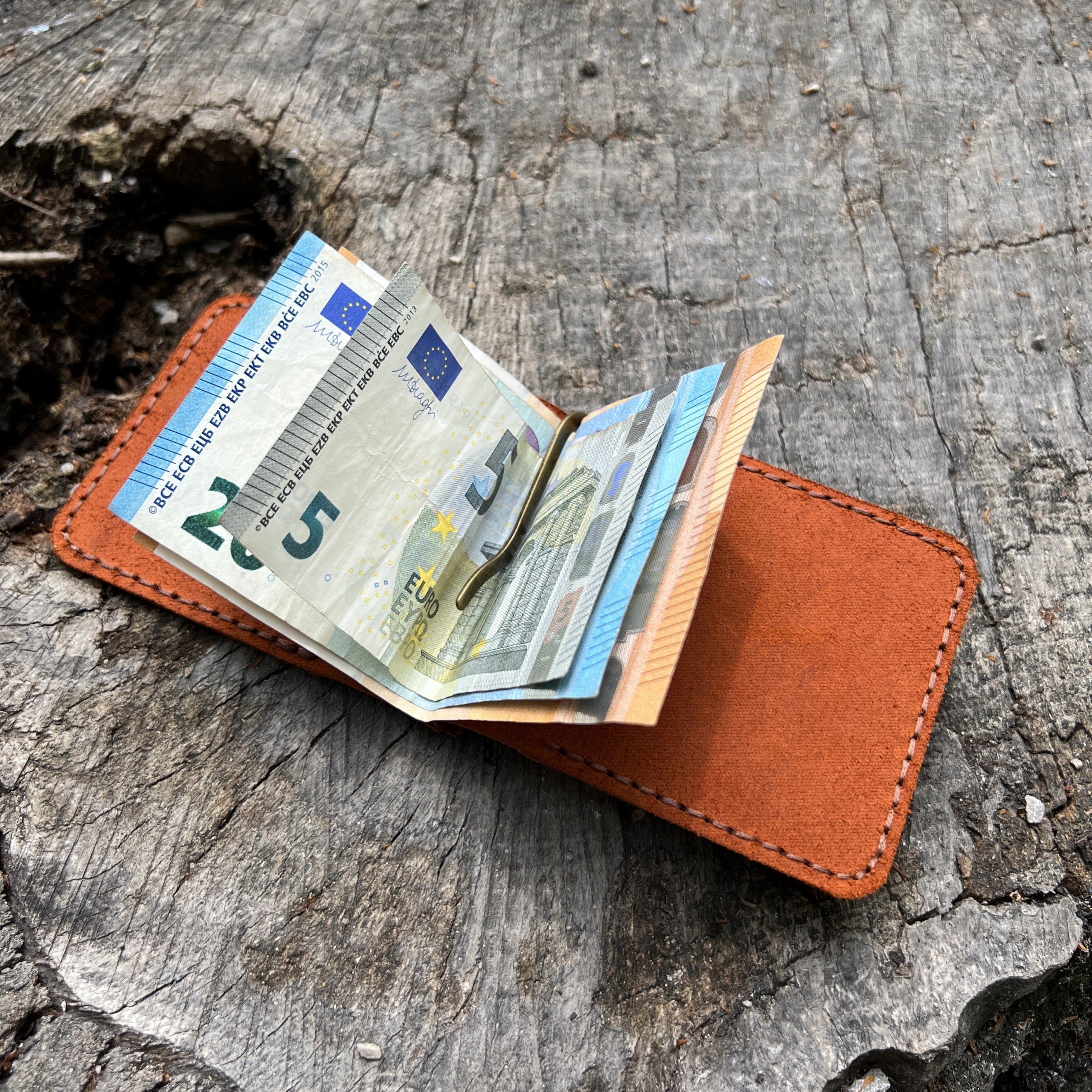 коричневый кожаный кошелек с зажимом для банкнот. Рука -изготовленная высококачественная натуральная кожа.