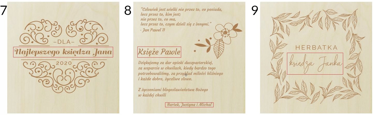 После совершения покупки не забудьте отправить информацию о выбранном дизайне и данные, необходимые для персонализации. Место, подлежащее изменению, отмечено красной рамкой.