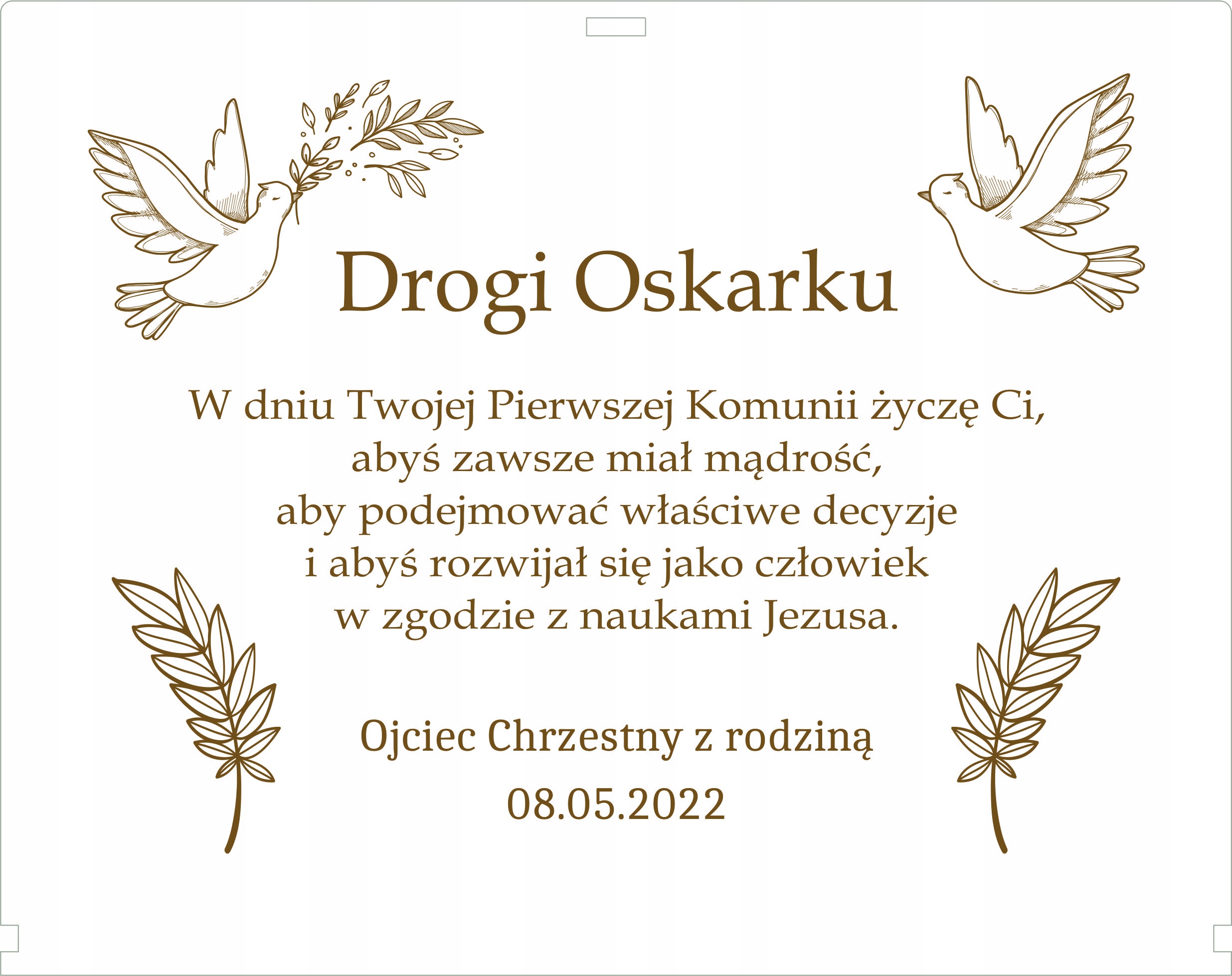 ✔ Имя ребенка в измененной форме (например, сувенир первого святого причастия Оскара)