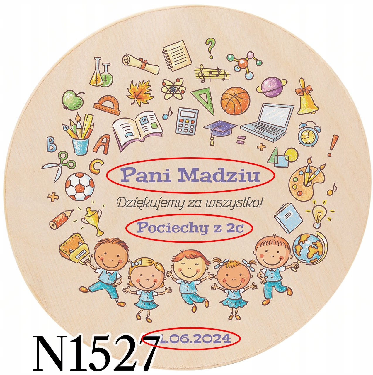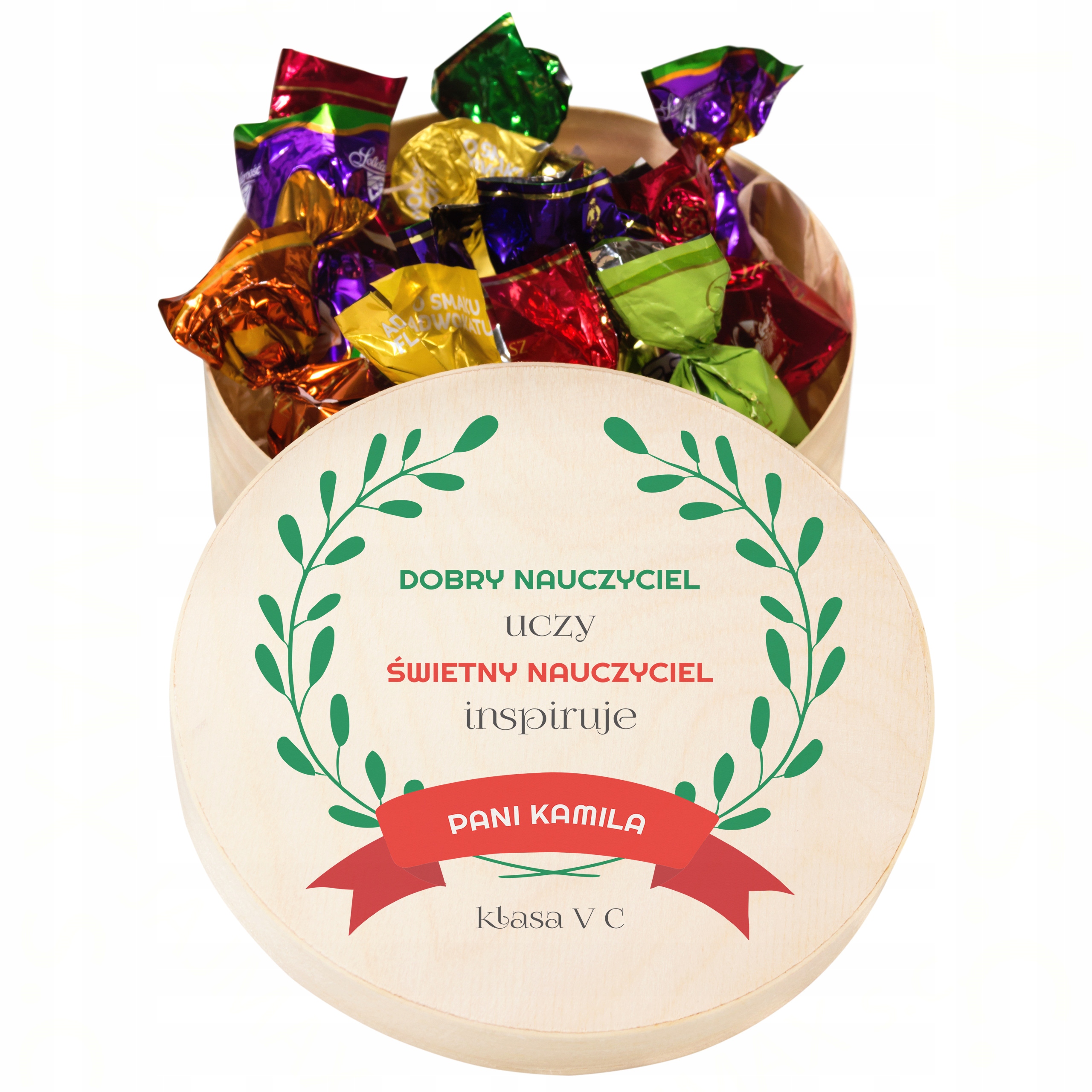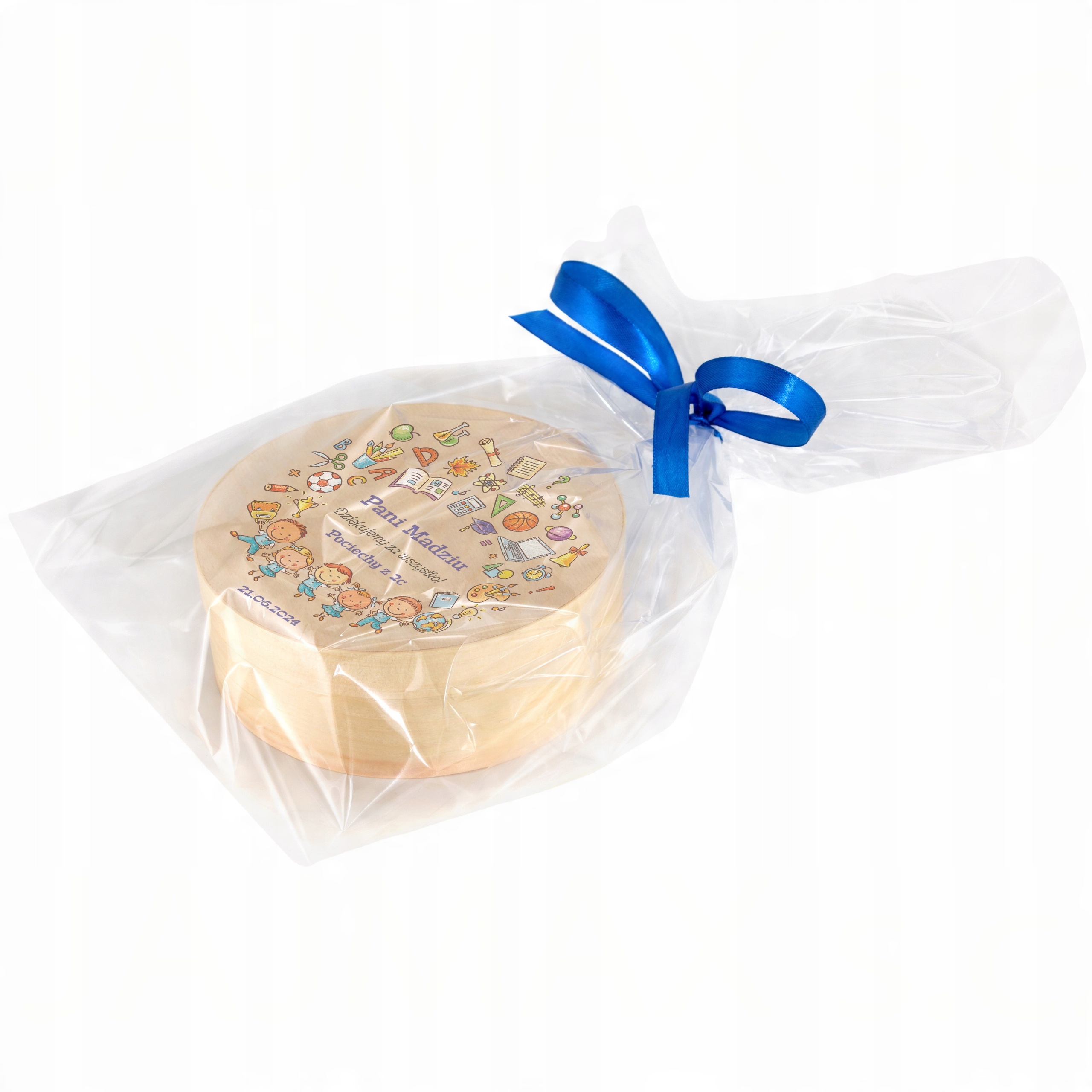 - круглая коробка с персонализированным принтом,