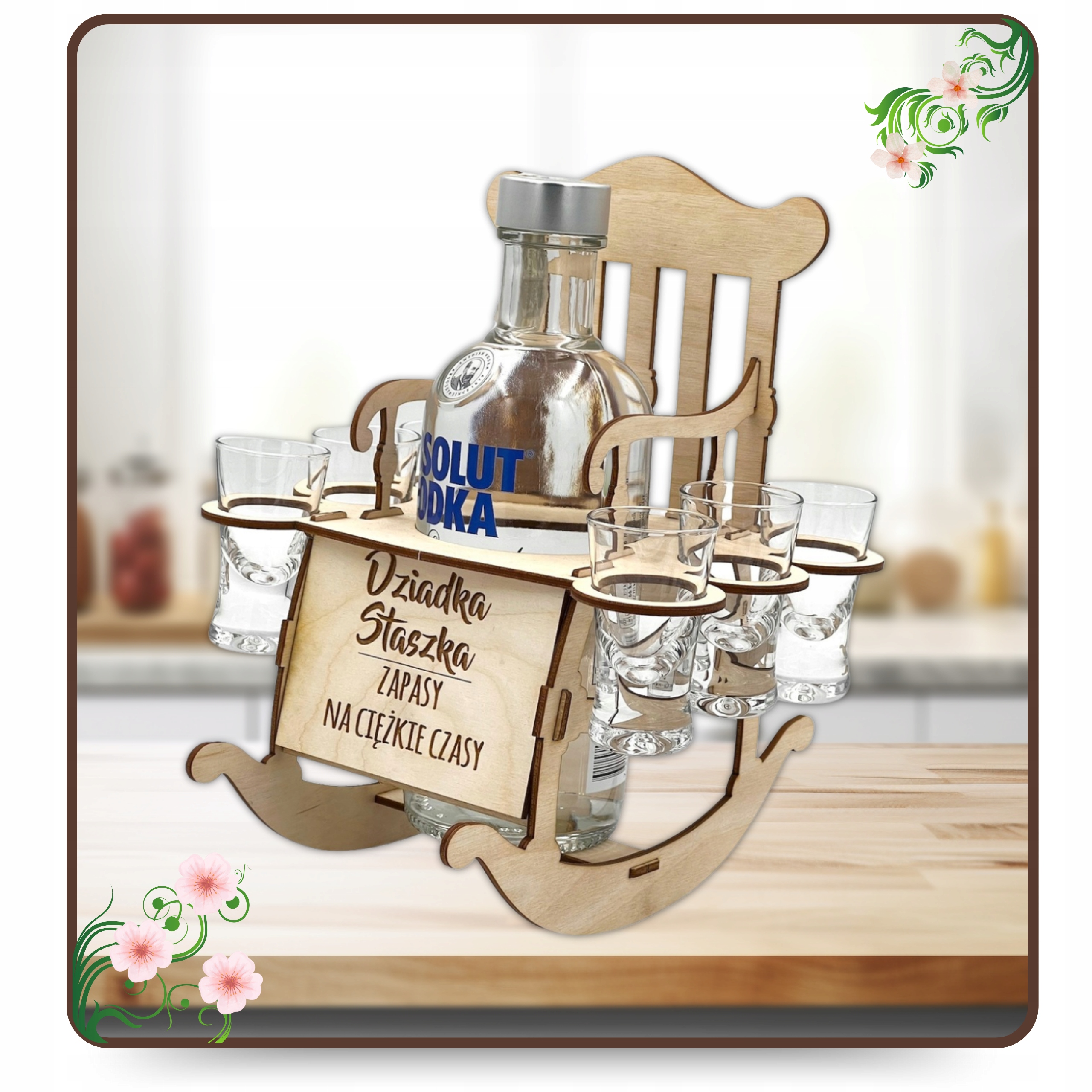 ✳️ Стильное кресло-качалка с функциональным баром | ✳️ Из прочной фанеры натурального цвета | ✳️ Именная гравировка на разные случаи жизни | ✳️ Вмещает бутылку алкоголя и 6 стаканов | ✳️ В наборе 6 стаканов с гравировкой | ✳️ Поставляется по частям для самостоятельной сборки |
