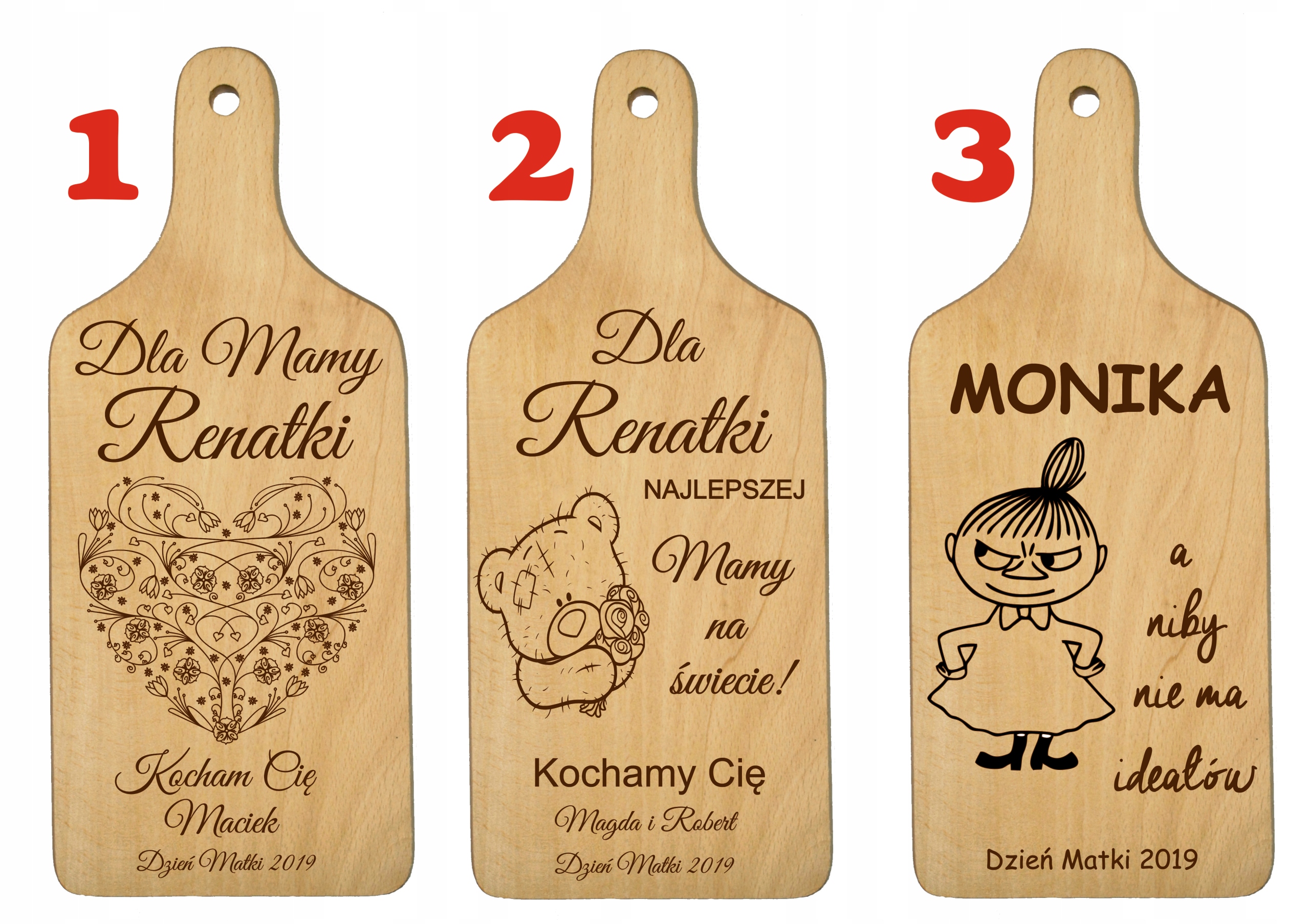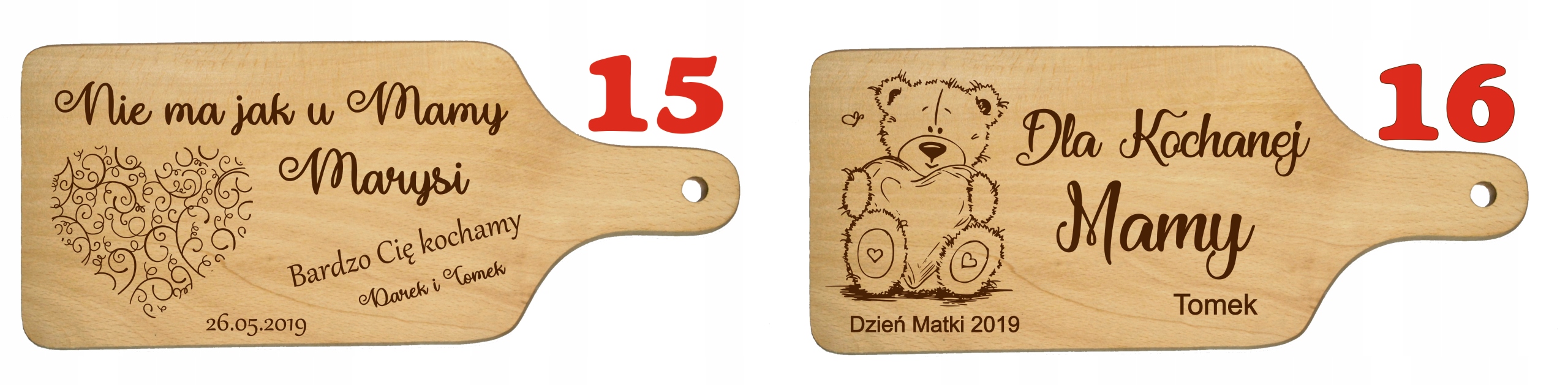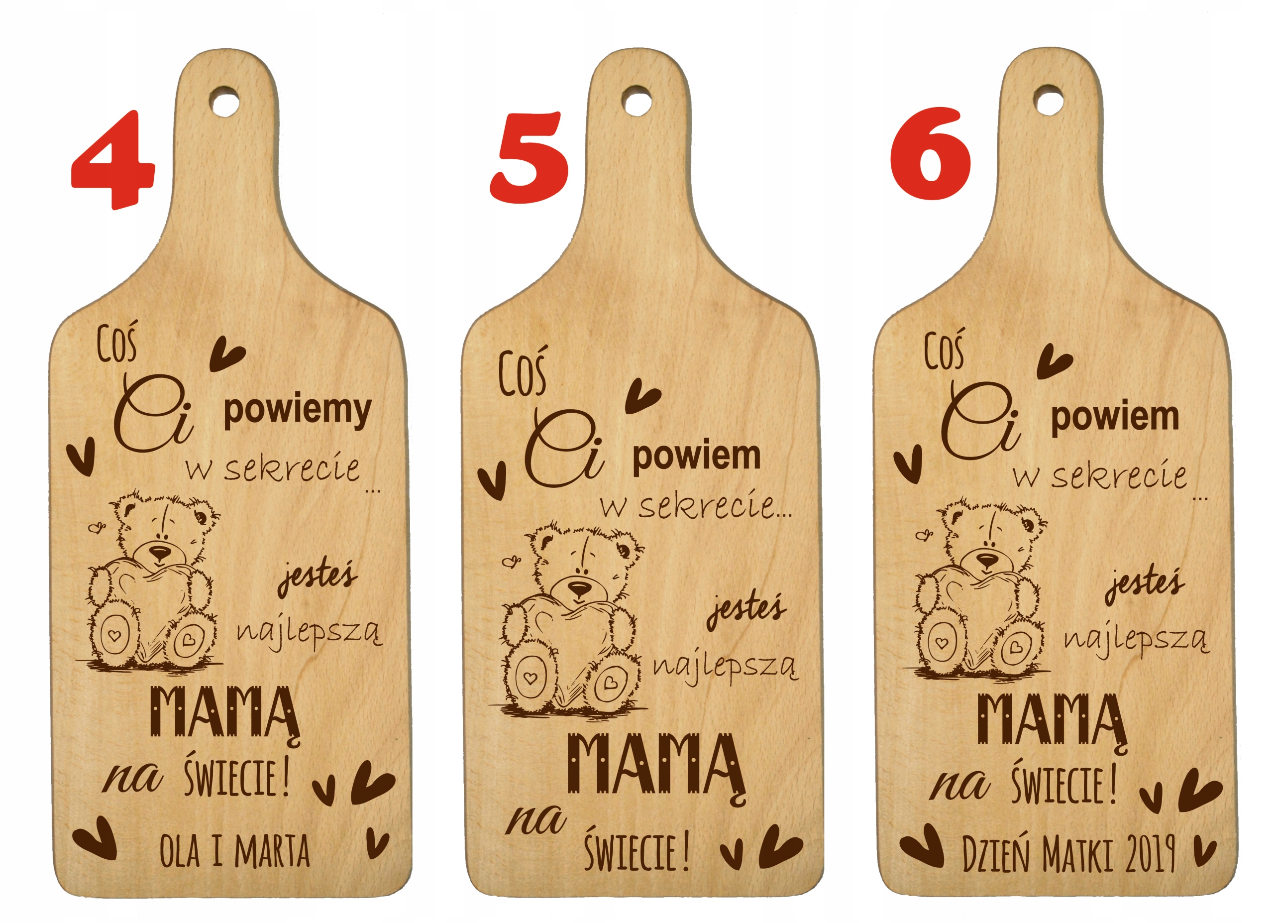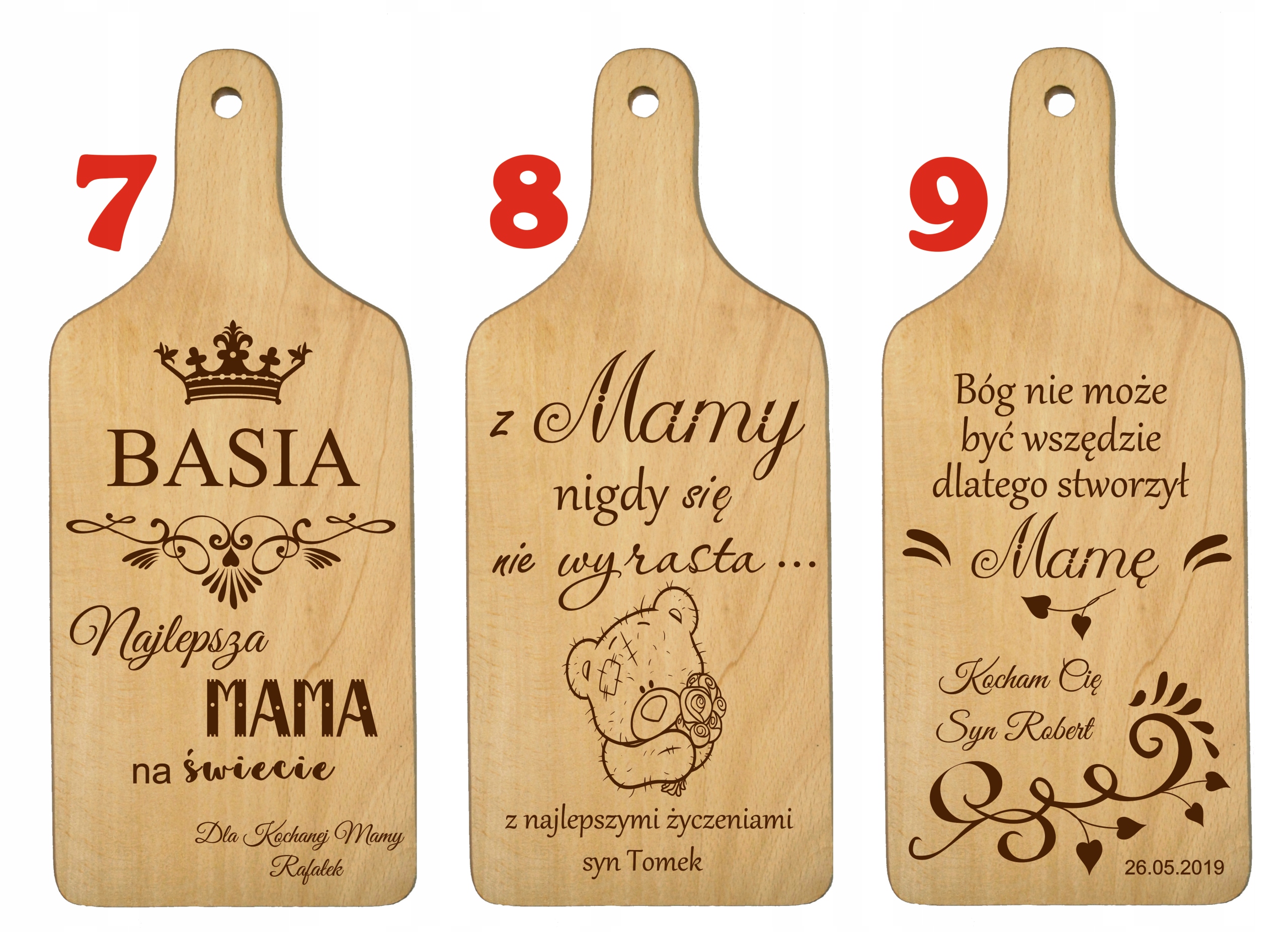 После покупки предоставьте нам следующую информацию: Номер рисунка и названия для гравировки (например, рисунок № 7, имя матери: Зося, От: Майя)