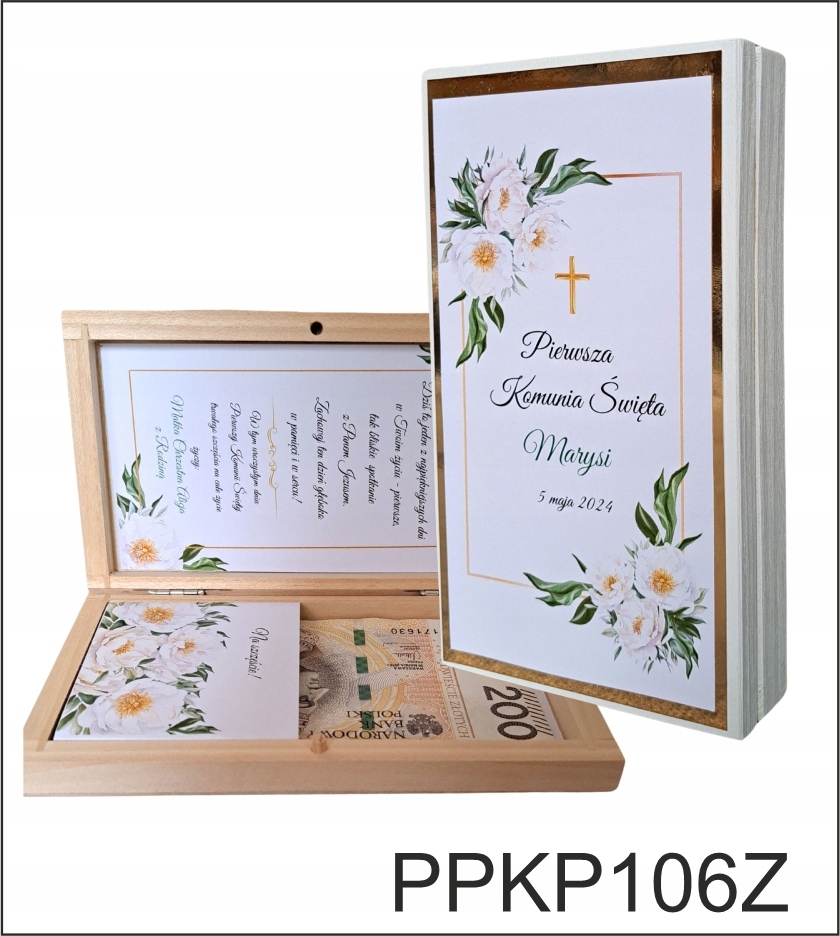Внутри коробки лежат персональные пожелания. Вы можете положить деньги в шкатулку, которую хотите подарить молодому человеку по случаю первого причастия.