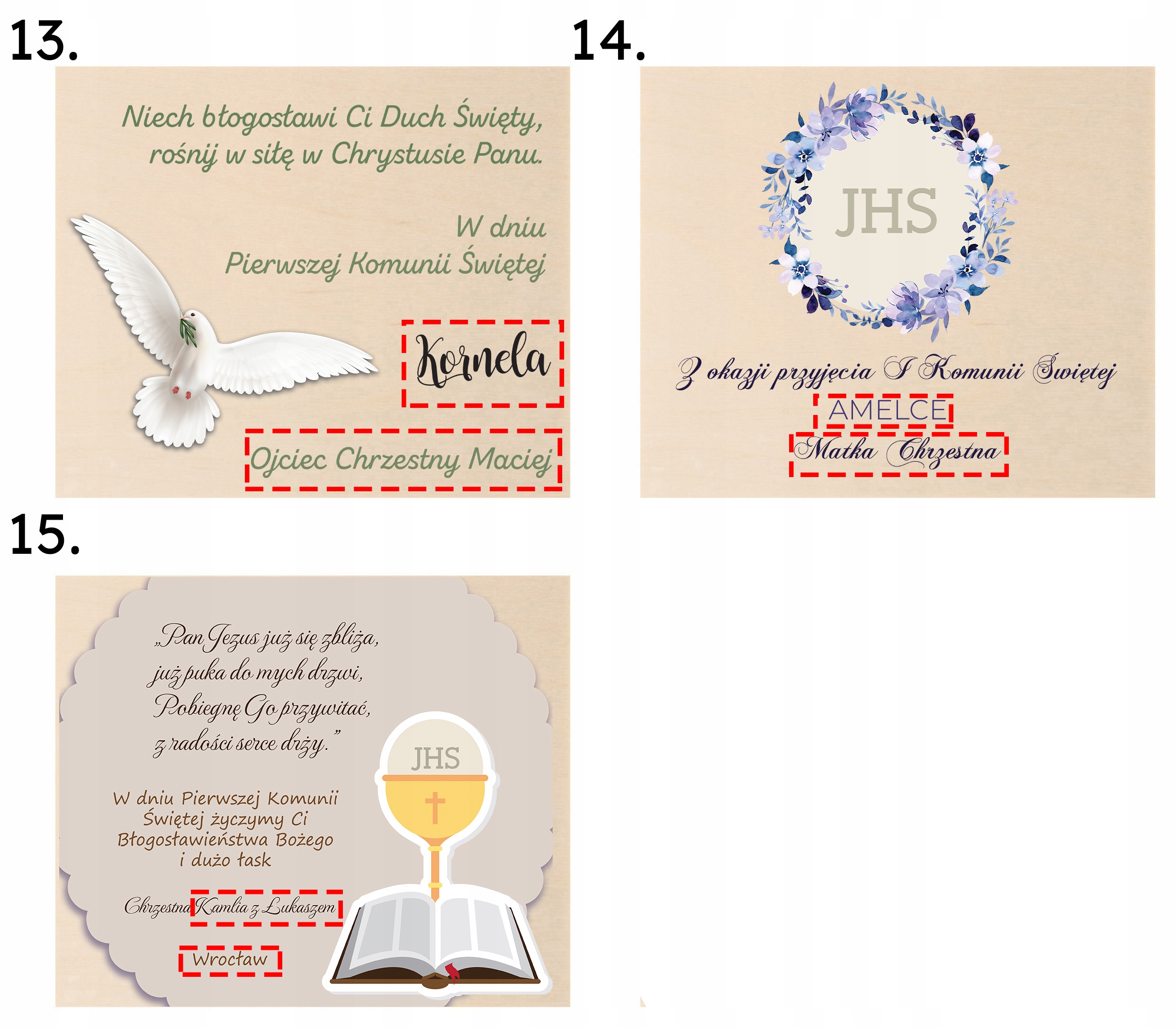 *Возможно вносить изменения вне отмеченных мест, например при изменении множественного числа на единственное, мужской формы на женскую или наоборот. При покупке дополнительной услуги гравировки (доступна на других наших аукционах) мы можем заменить текст с выкройки на текст, предоставленный покупателем. Помните, что количество отправленных клиентом символов должно соответствовать количеству символов текста из шаблона.