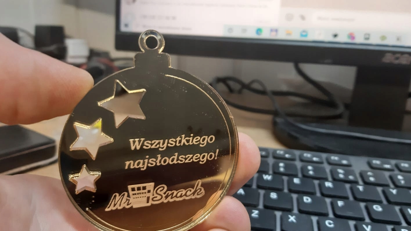 Красивые зеркальные безделушки с вашей гравировкой в комплекте с целлофановым пакетом и лентой. Гравировка на оборудовании высочайшего качества - не выцветает и не стирается.