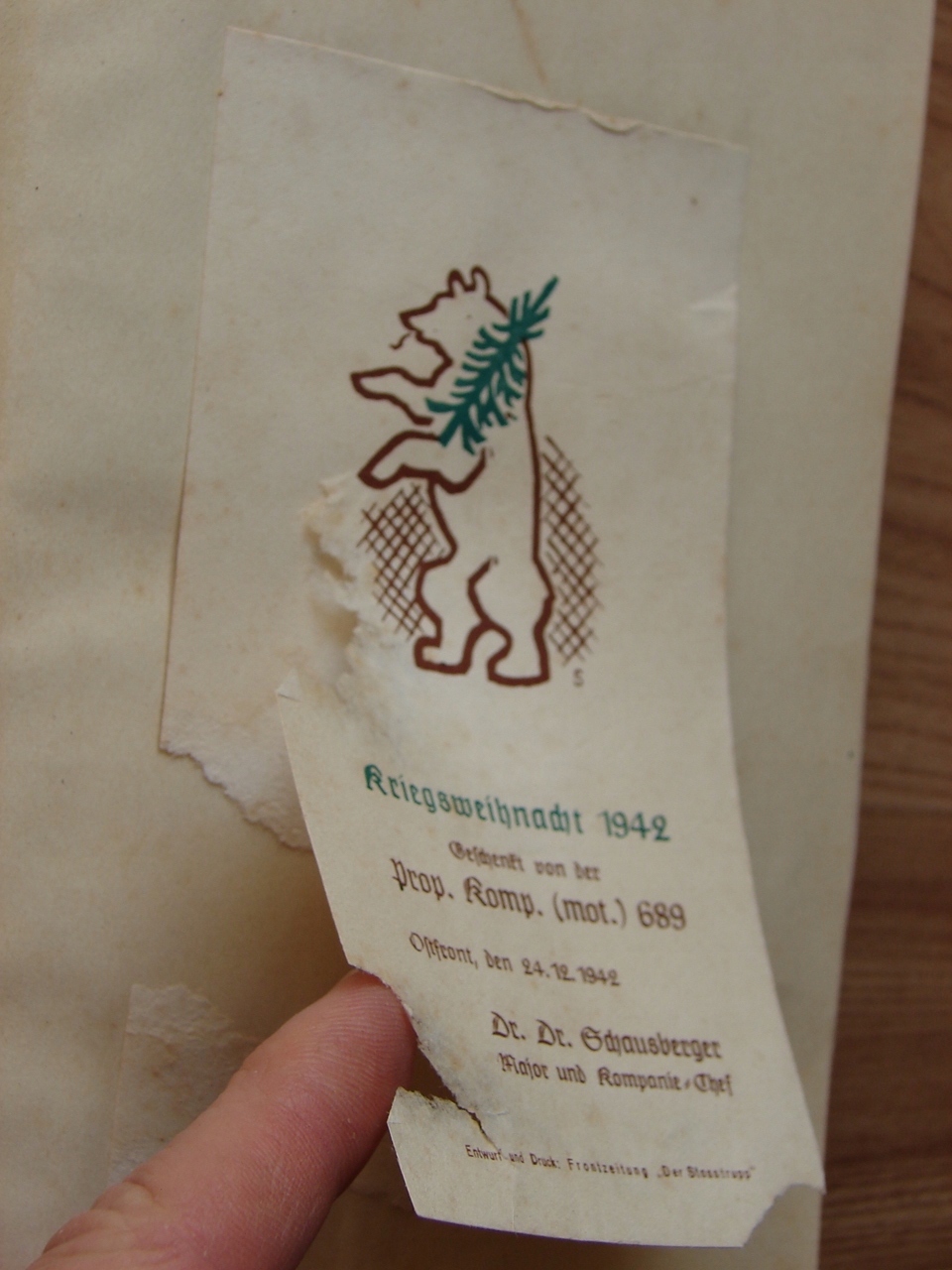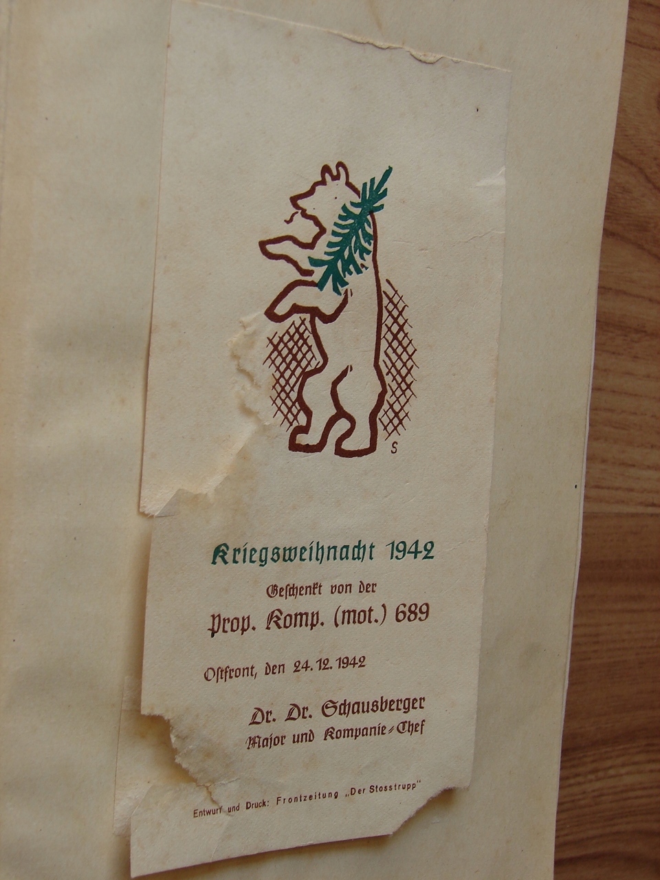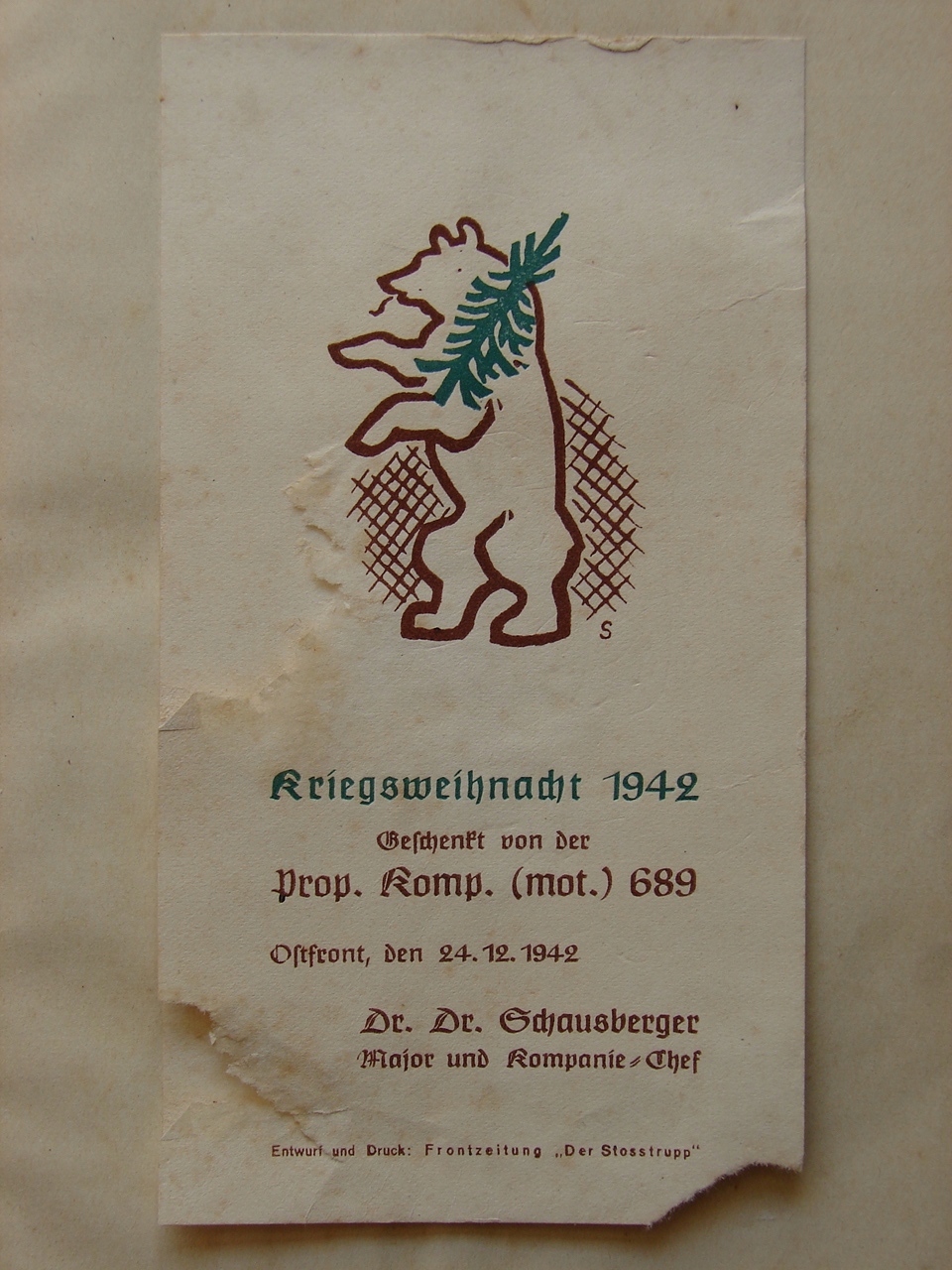 Рождественский Ariega 1942, подаренная Comp. (Моторизованный) 689 Восточный фронт, 24 декабря 1942 года, доктор. доктор Майор Шаусбергер и руководитель компании Project and Print: Frontowa Gazet "The StoStrupp"