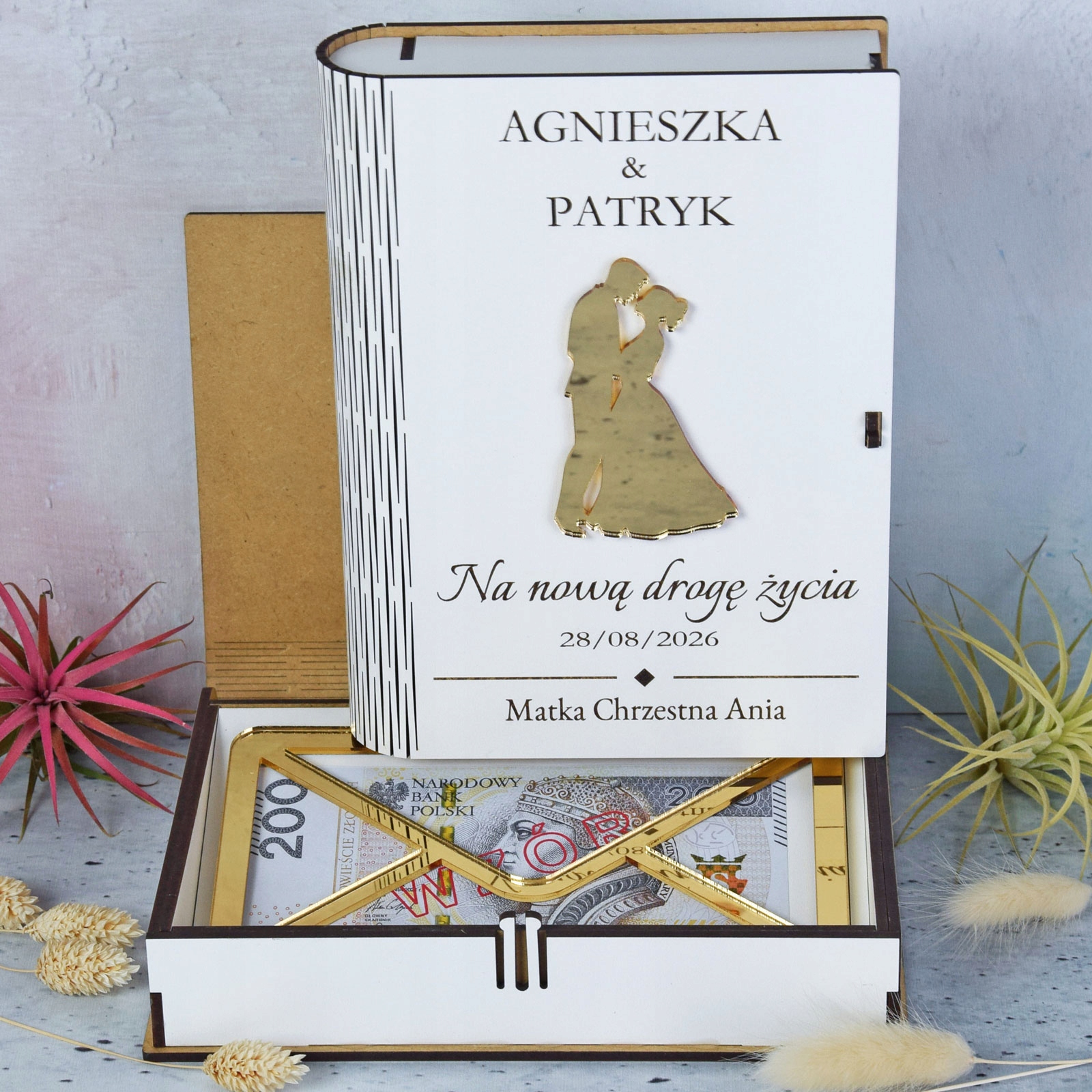 Подарок книги книги для свадьбы с золотым украшением и конвертом за деньги