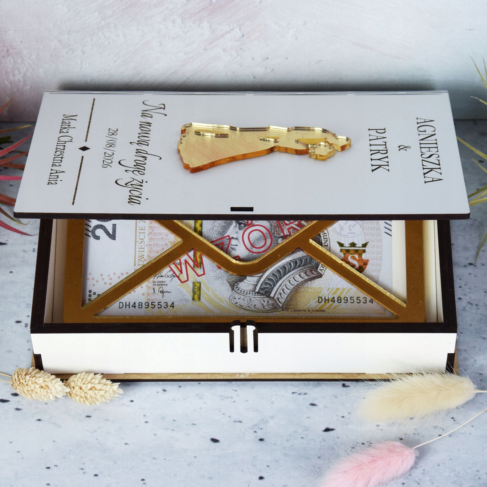 Уникальный подарок b> для уникального человека, идеально подходящего для свадебного подарка. Пара получателей молодых людей будет приятно удивлена вашей изобретательности и, безусловно, удовлетворена. Все, что вам нужно сделать, это поместить банкноты в конверт. Коробка составляет декоративный элемент Следовательно, ее можно смело отображаться на комоде, столе или на витрине.