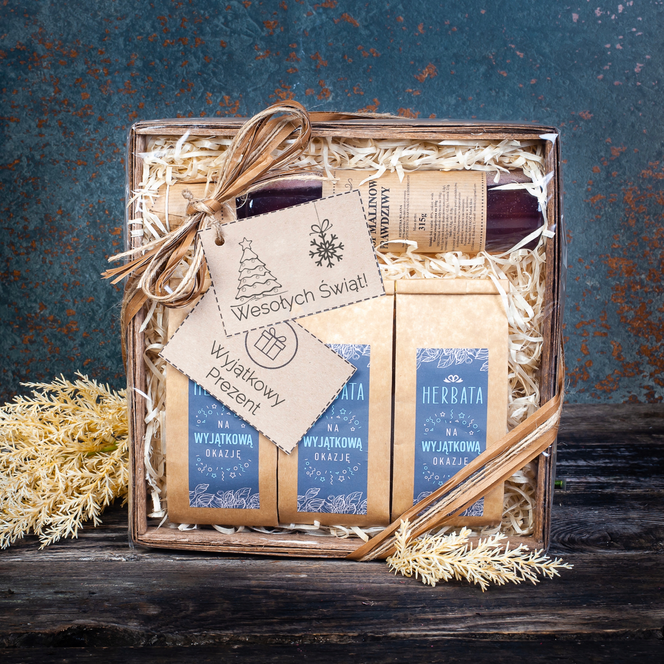 Предлагаемый нами подарочный набор подойдет к любому случаю. Это отличная идея – оригинальная и всегда хитовая! Содержимое упаковано в высокопрозрачную целлофановую пленку. Все это дополняется изысканной лентой, которая придает всему комплекту шарм и неповторимый вид. Корзина наполнена эстетичной древесной шерстью. Продукты питания внутри набора свежие и имеют неповторимый вкус, благодаря чему этот подарок надолго запомнится получателю.