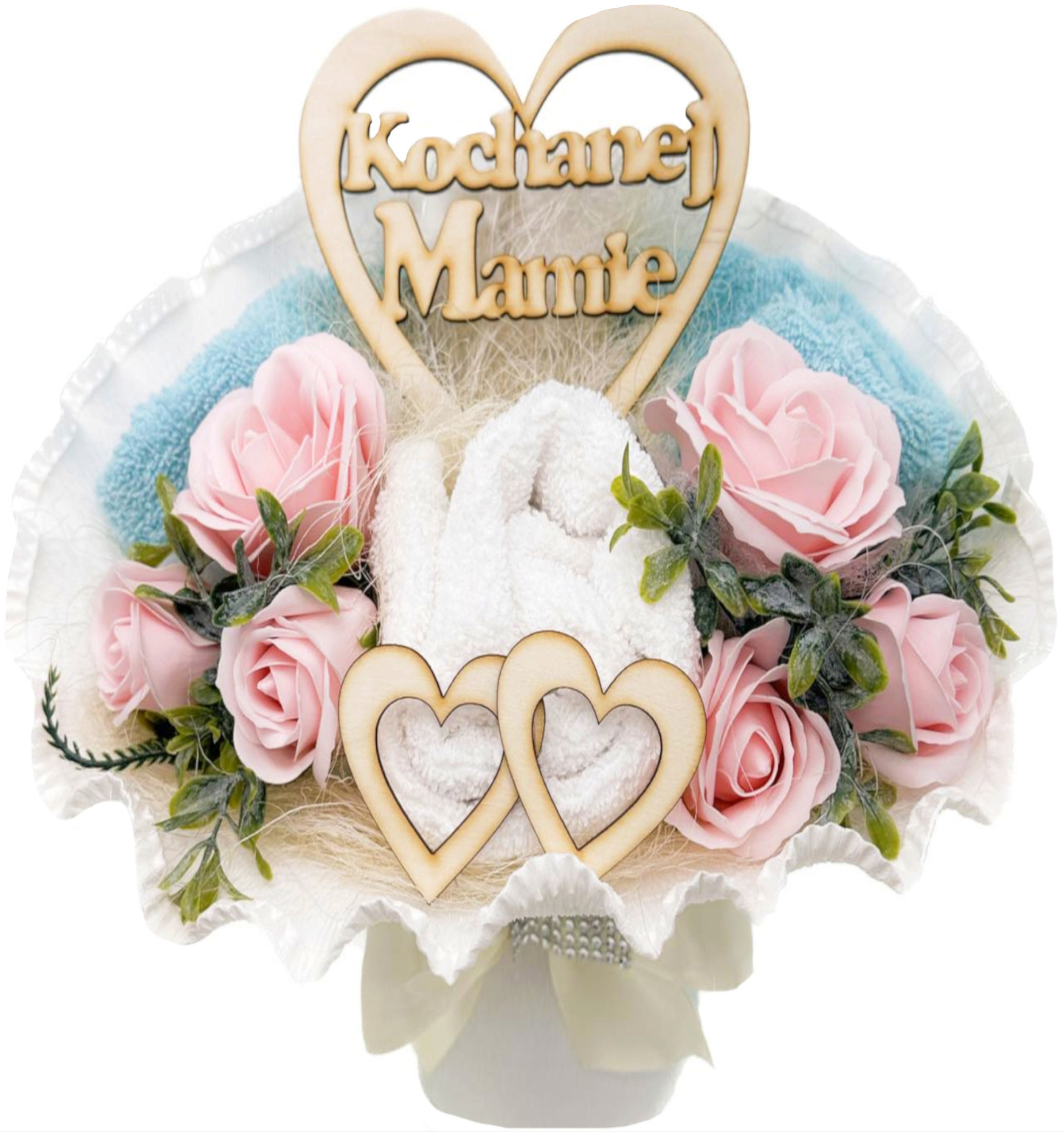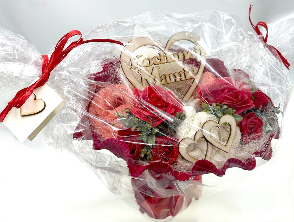 Не ищите дальше! Наш букет из полотенец представляет собой идеальное сочетание элегантности и функциональности. Вместо увядающих цветов подарите букет из двух качественных полотенец, красиво украшенных мыльными цветами и деревянным сердечком.
