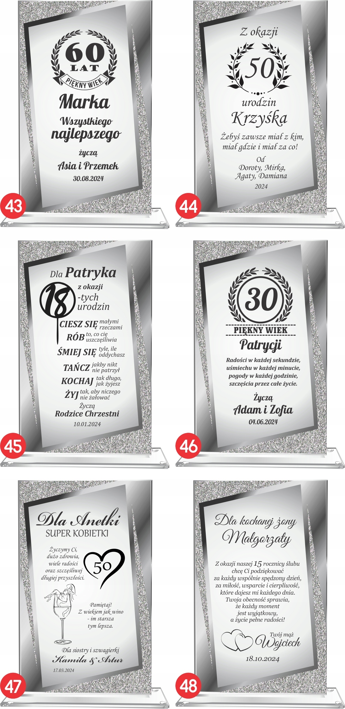 Тексты и варианты можно свободно изменять по вашему желанию. Номера годовщины приведены в качестве примера и могут быть изменены. Продавец сообщает, что изделия из стекла могут содержать на поверхности небольшие пузырьки воздуха и царапины, возникшие в результате производственного процесса.