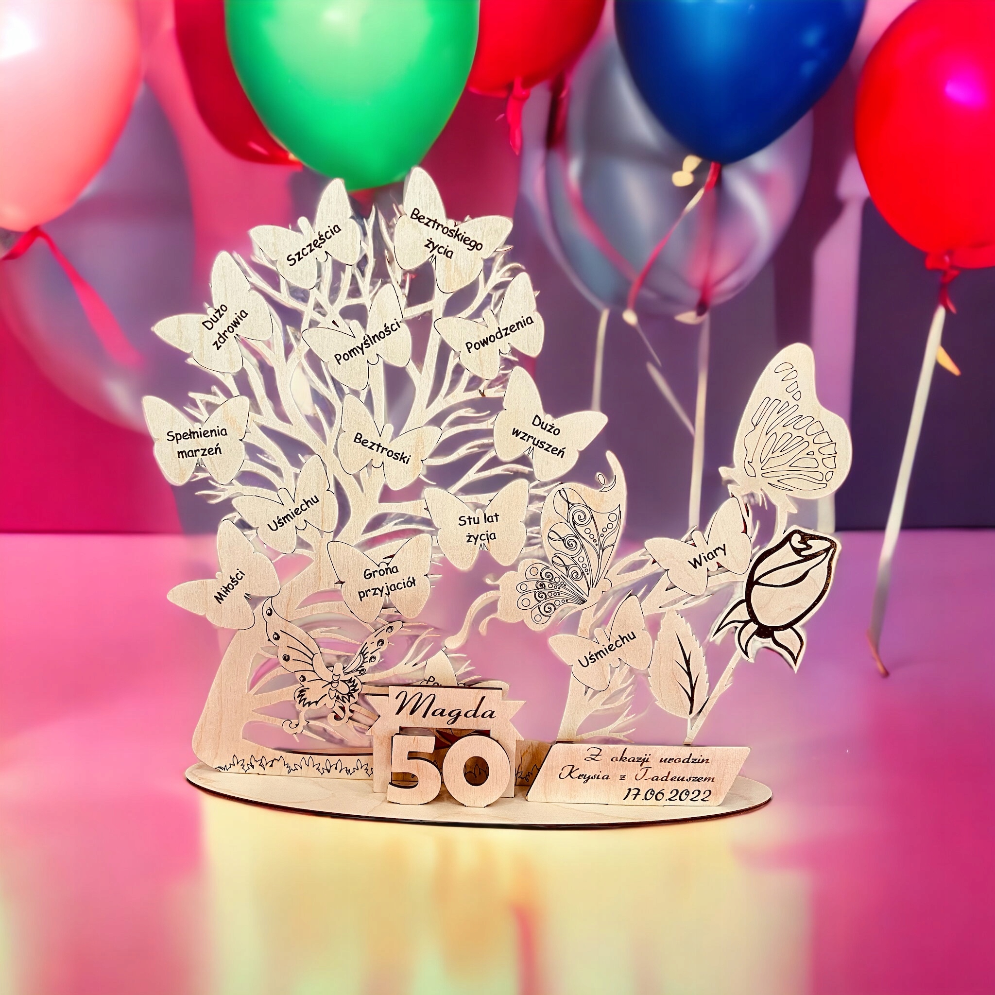 ПОДАРОК НА 18, 20, 30, 35, 40, 45, 50, 60, 70, 80, 90, 99 ДЕНЬ РОЖДЕНИЯ ЖЕНЩИНЕ, ПАРНЕ, СВОЕМУ, СЕСТРЕ, БРАТУ, МАМЕ И ПАПА, ДЕРЕВО С ГРАВИНОЙ ПОЖЕЛАНИЙ