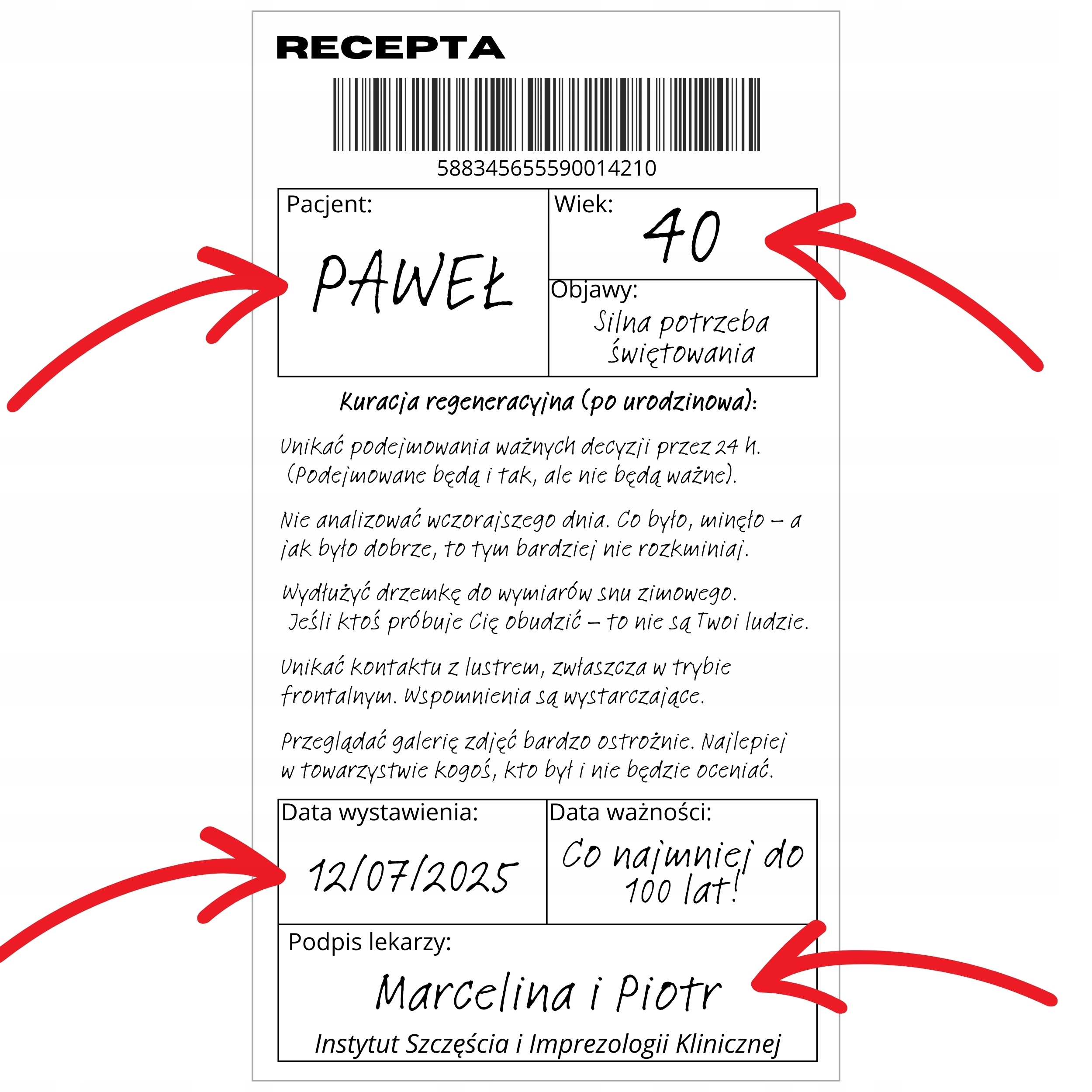 Забавный рецепт в медицинском стиле, приготовленный специально для именинника.