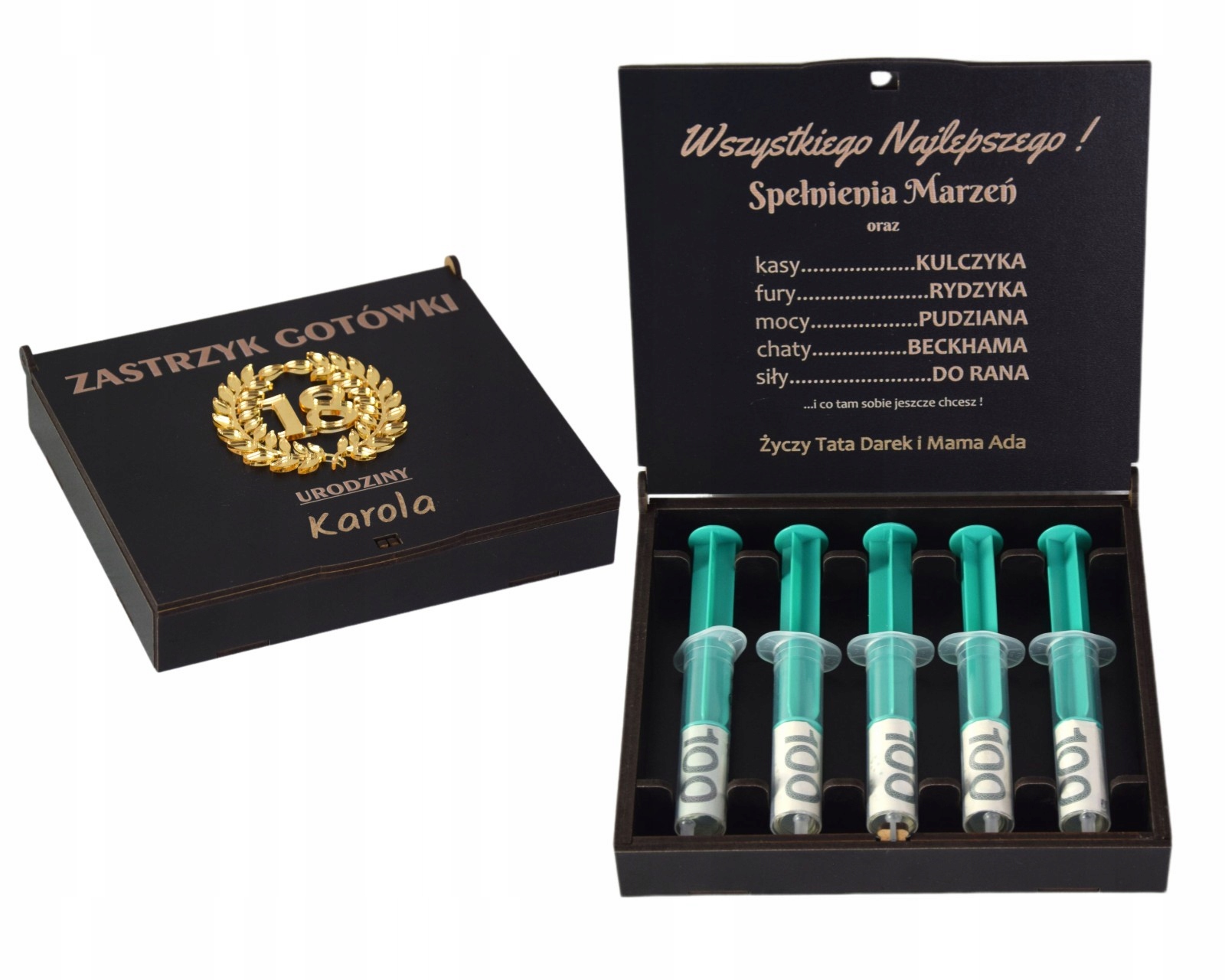 Уникальный подарок для особенного человека, идеально подходящий на день рождения. Получатель подарка будет приятно удивлен вашей изобретательностью и непременно доволен. Все, что вам нужно сделать, это положить в шприцы любые купюры. Коробка является декоративным элементом, поэтому ее можно легко разместить на комоде, столе или в витрине.