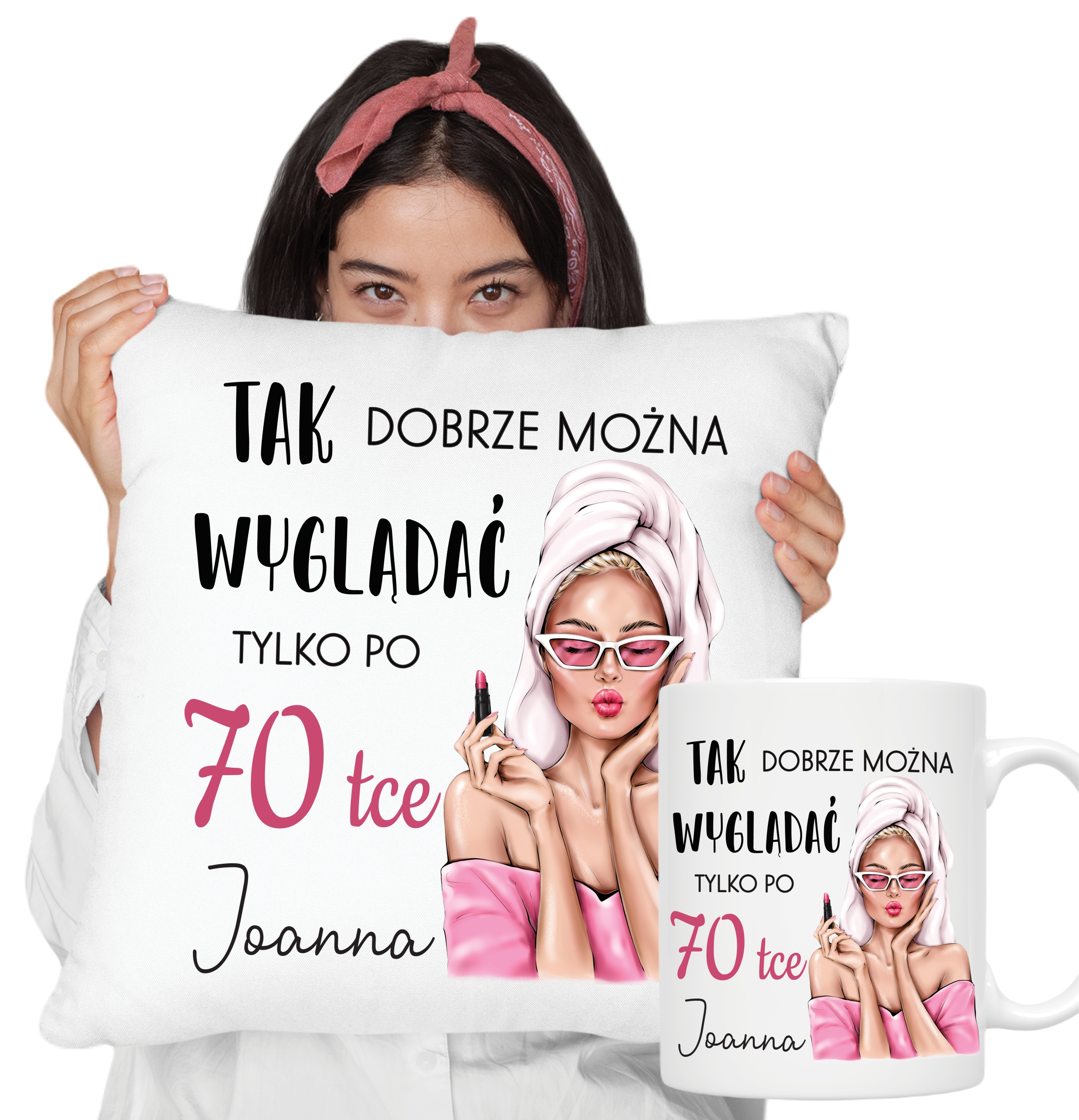 ПОДАРОК на 30 40 50 60 70 ДЕНЬ РОЖДЕНИЯ ЖЕНЩИНЕ НАБОР КРУЖКА + ПОДУШКА имя